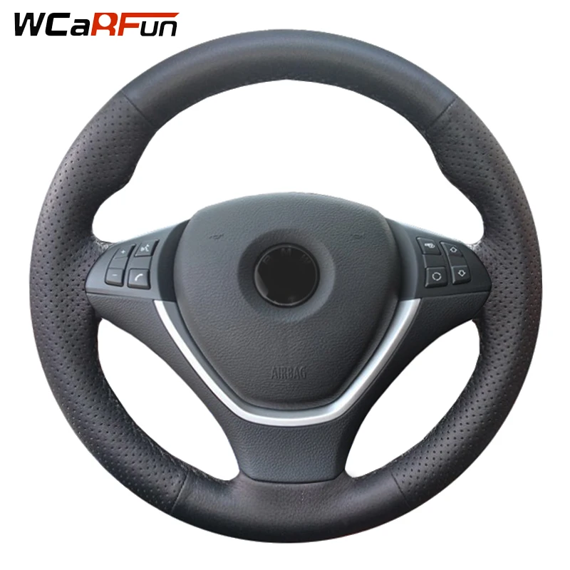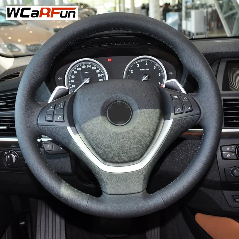 WCaRFun черный чехол рулевого колеса автомобиля из искусственной кожи для BMW X6 E71 2008-2014 E70 X5 2008-2013