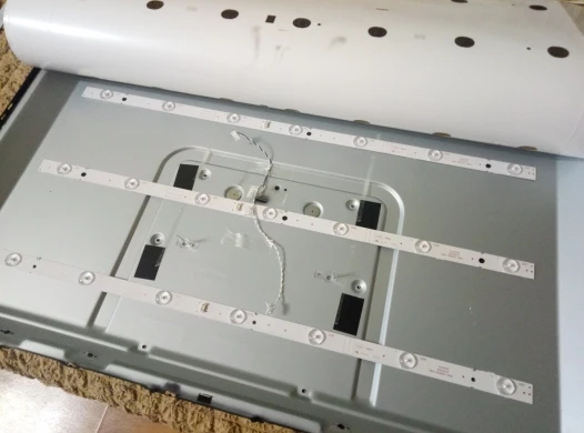 Пришло очень быстро службой EMS. Упаковка выше всяких похвал. Телевизор Telefunken TF-LED32S27T2. Всё встало чётко, работают ровно без засветов. От родных отличаются, хоть и маркировка совпадает. Оригинальные распаяны на текстолите с медной полосой с обратной стороны. А эти распаяны на алюминиевой полоске. Что то мне подсказывает что второй вариант лучше. На всякий случай полоски смазал термопастой. Так же советую найти статьи по замене этих модулей и уменьшить ток через светодиоды как там описано.