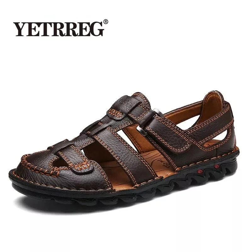 Сандалии VANCAT мужские из натуральной кожи, мягкие удобные пляжные туфли в стиле ретро, Прошитые, Повседневная летняя обувь, большие размеры 38-46, ручная работа