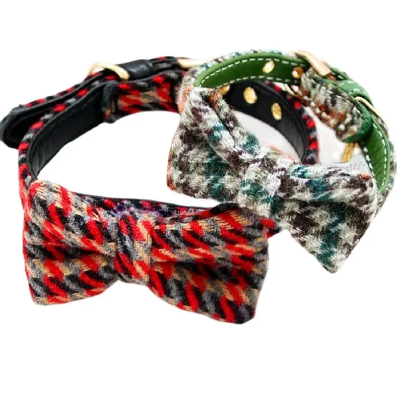 Бесплатная доставка, галстук-бабочка для собак из мягкой искусственной и шерсти, галстук-бабочка в клетку в британском стиле для прогулок, отдыха, Йоркского пуделя