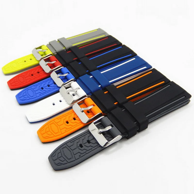 Ремешок резиновый для часов, спортивный двухцветный мягкий водонепроницаемые часы с силиконовым корпусом для дайвинга, 20 мм 22 мм 24 мм 26 мм
