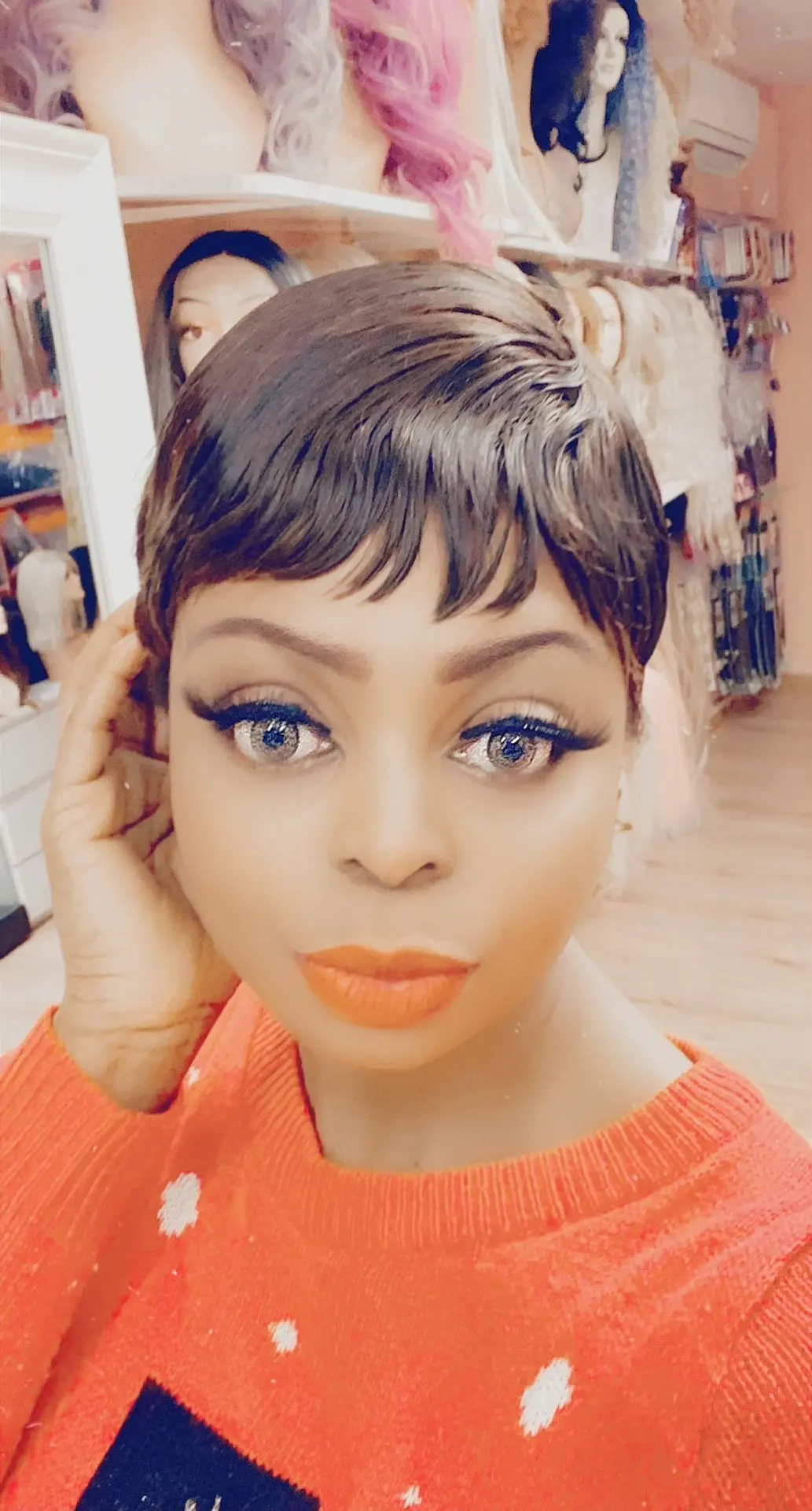 Этот парик красивый! Выглядит потрясающе, когда вы надеваете его! Никаких проблем! Я бы порекомендовал купить этот парик, особенно если вам нравится короткий милый стиль! Поверьте мне, вы хотите сделать неправильный заказ этого парика!