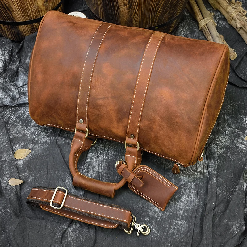 Мужская Дорожная сумка, из натуральной кожи, прочная, плотная, в стиле ретро