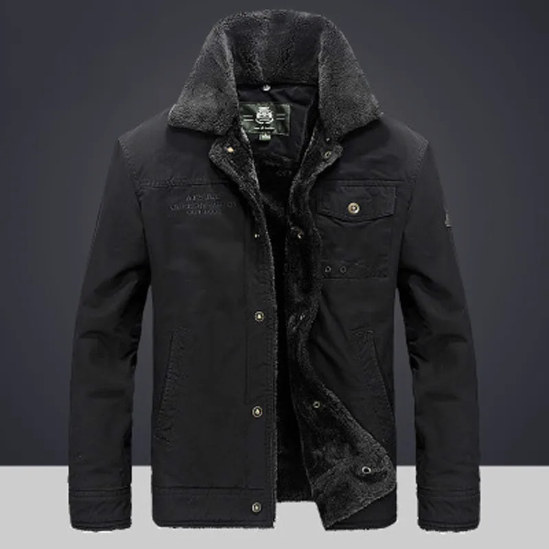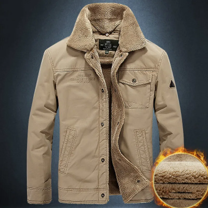 Мужская куртка с шерстяной подкладкой, теплая ветровка, пальто с ка...