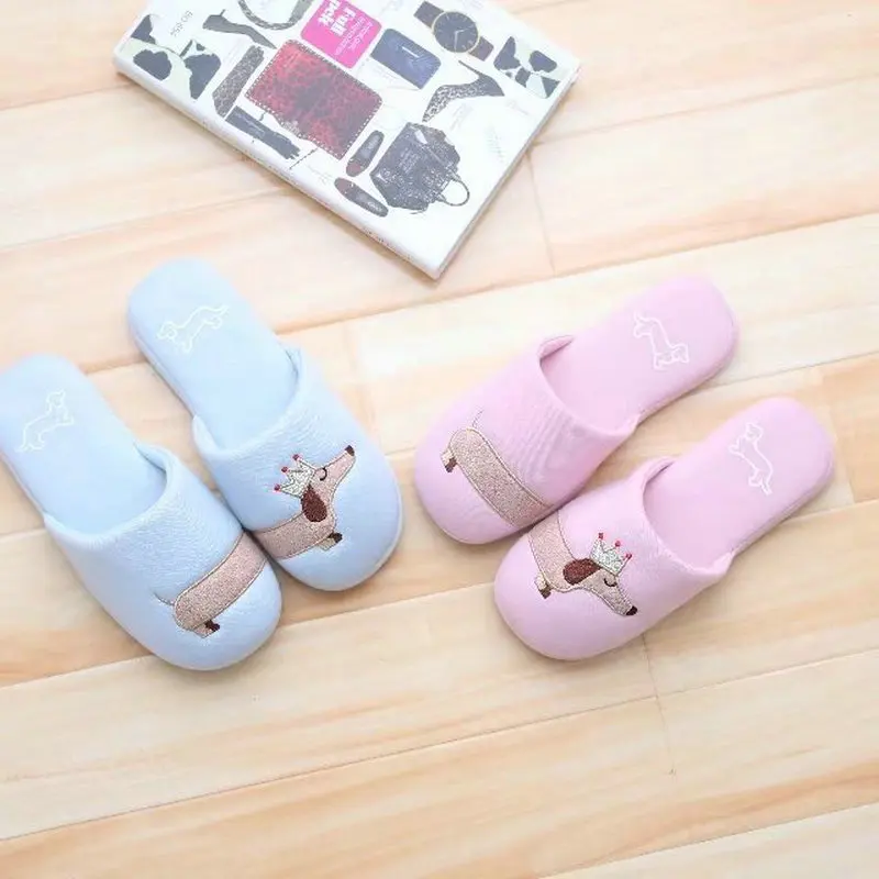 Прямая поставка, женские пушистые розовые светильник бые плюшевые хлопковые тапочки с собакой, слипоны, Такса, женские Тапочки