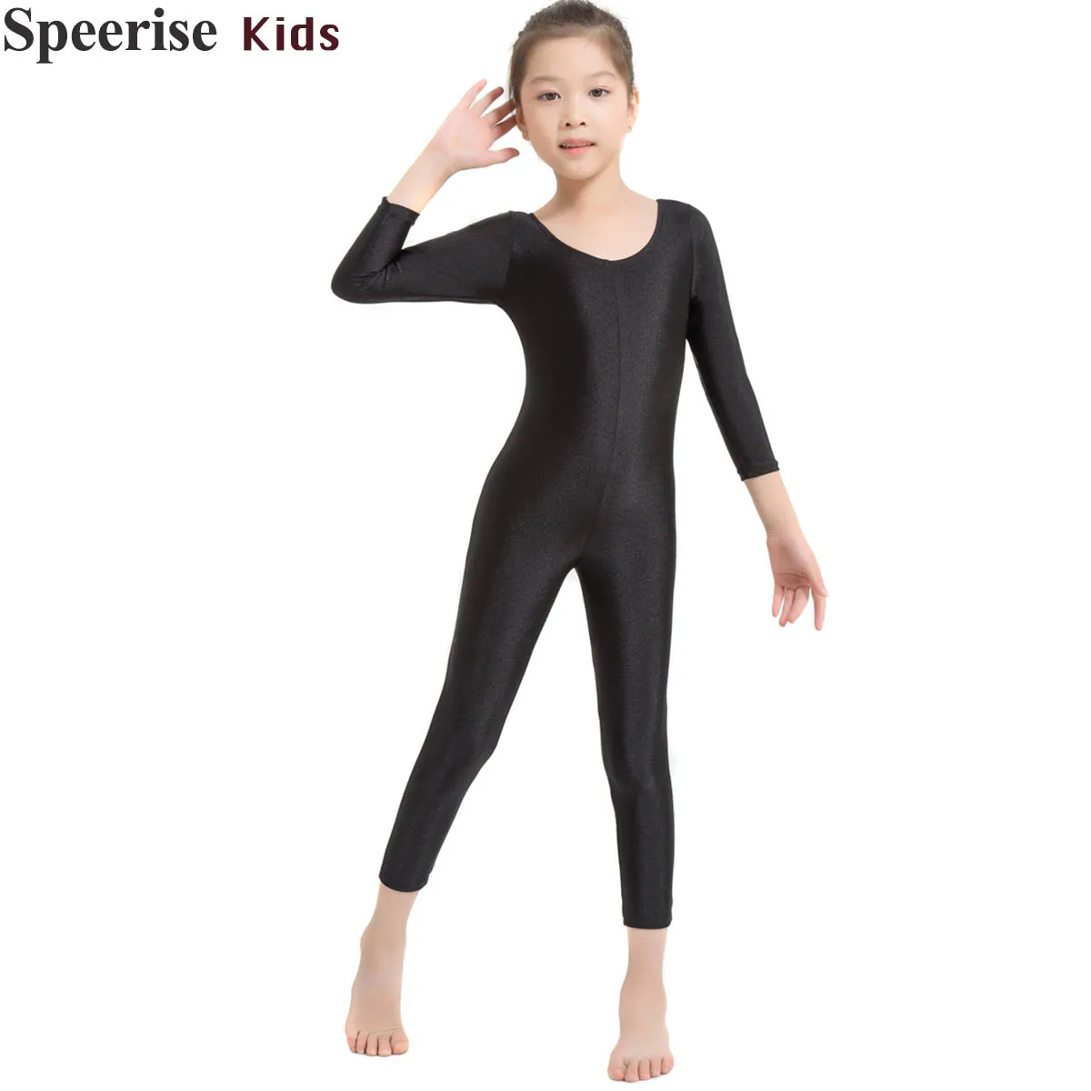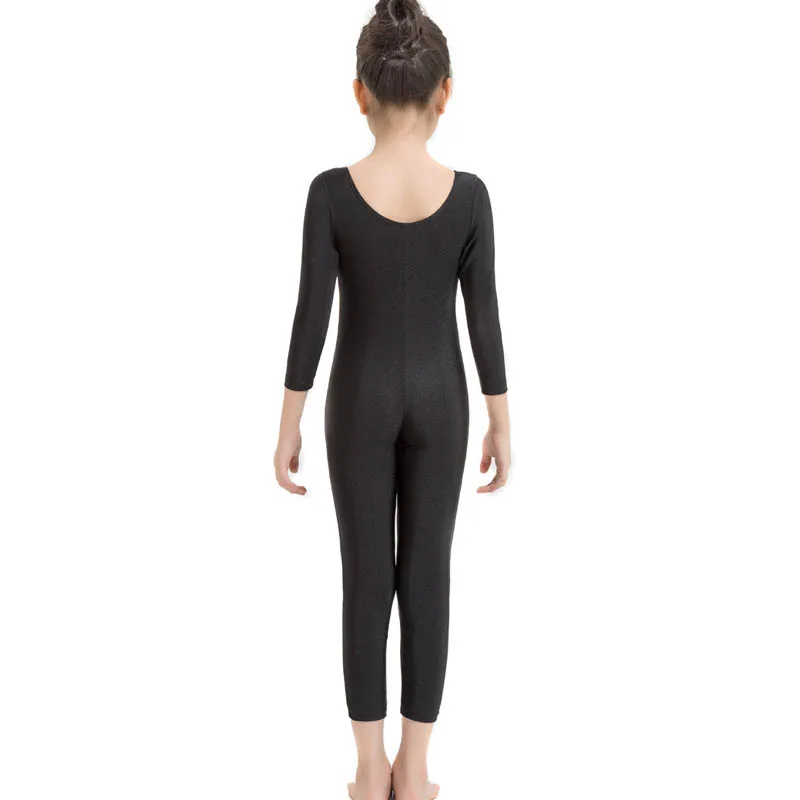 Детский гимнастический трико с глубоким круглым вырезом и длинным рукавом, комбинезон для девочек из спандекса, лайкры, балетный танцевальный костюм