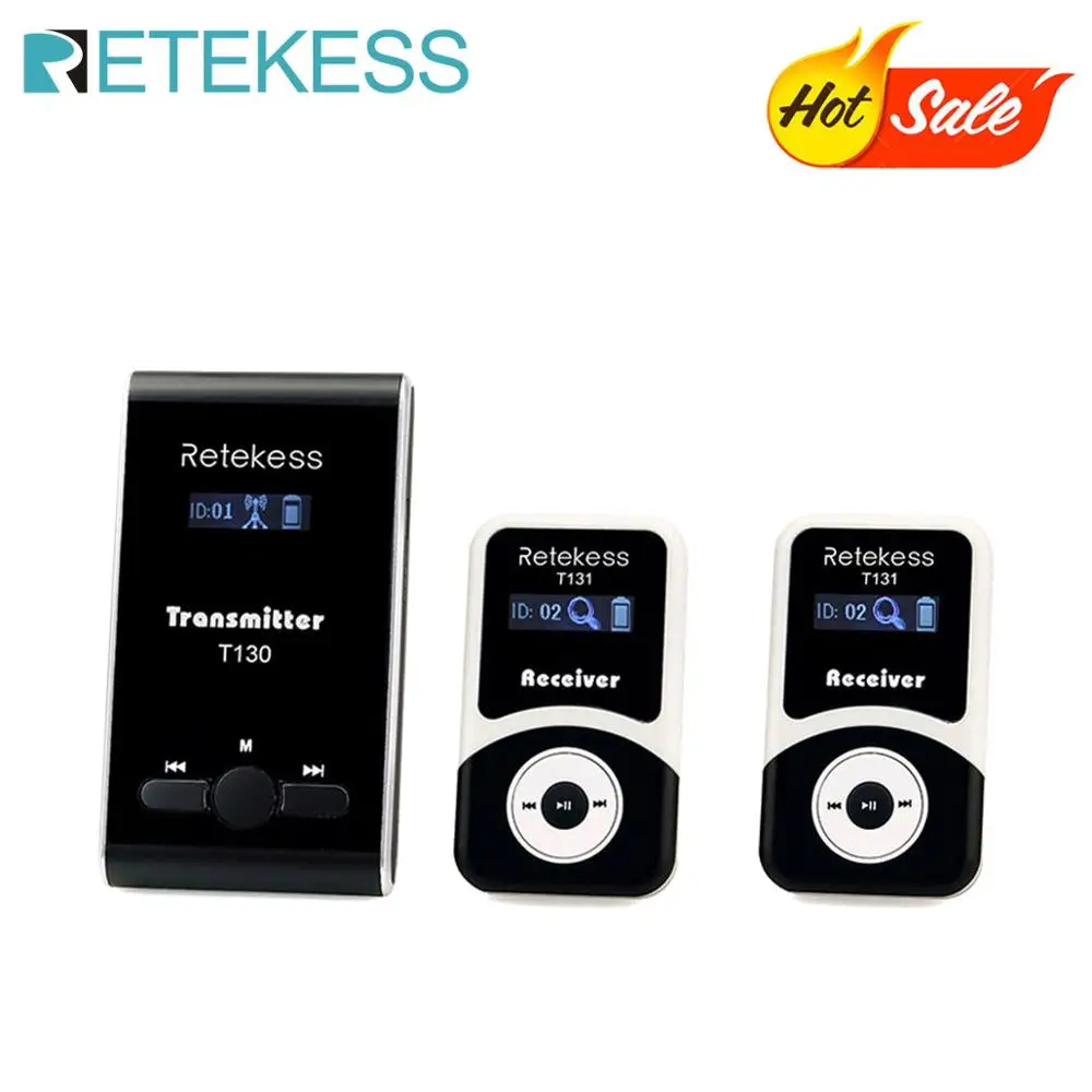 Retekess Беспроводной гид Системы 1 передатчик T130 + 2 приемника T131 для гида синхронного перевода Системы