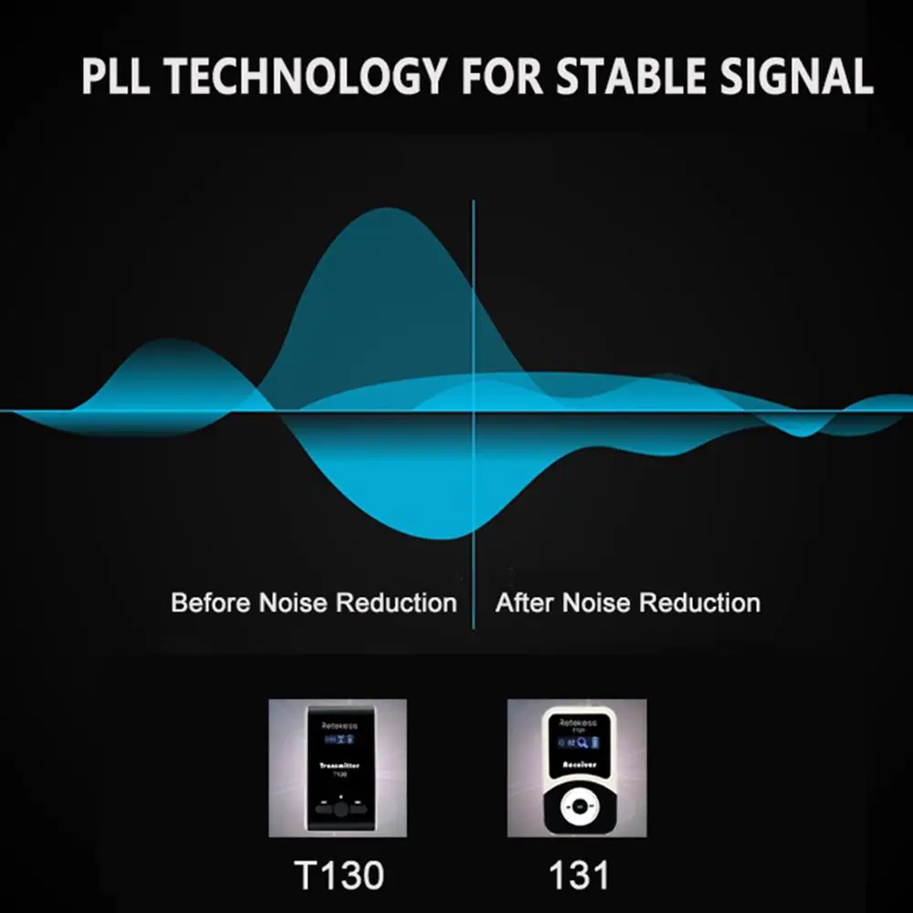 Эта беспроводная гид-система состоит из T131 передатчик и T130 приемника. Динамик носит передатчик с микрофоном и аудитории одежда приемник с наушником. С одним передатчиком можно подключить множество приемник в соответствии с вашими потребностями. Это обеспечивает стабильный сигнал от PLL и то и другое bulit в аккумуляторная Бетти.