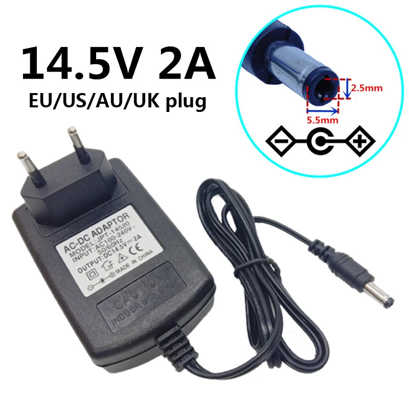 14,5 в, 2 А, переменный ток 100-240 в, преобразователь источника питания постоянного тока 14,5 в, 5,5 мА, вилка для ЕС, США, Великобритании, Австралии, 2,1 мм x 2,5-мм, импульсное соединение