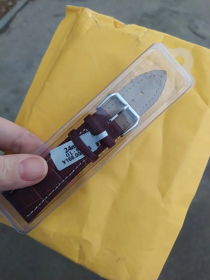 Ремешок приехал быстро. Качество хорошее, покупал самый дешевый вариант под застежку "бабочку". Похоже на кожу. В комплекте инструмент и крепления к корпусу. Рекомендую к покупке))