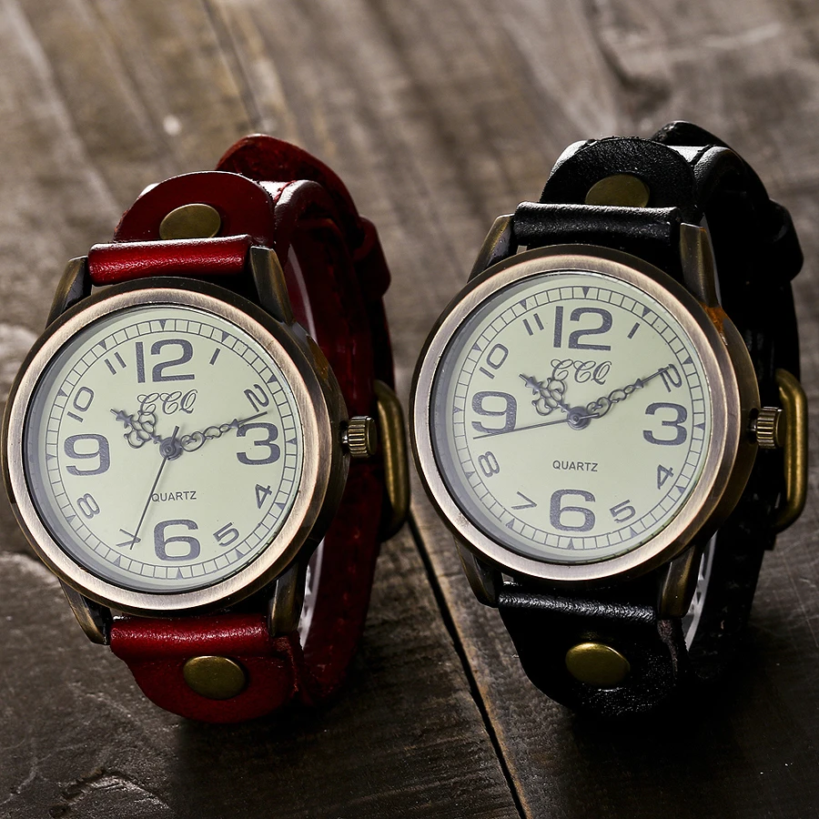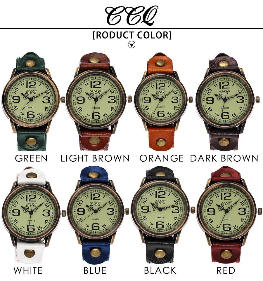 Часы наручные CCQ кварцевые мужскиеженские, брендовые винтажные водонепроницаемые, с ремешком из натуральной кожи, подарок
