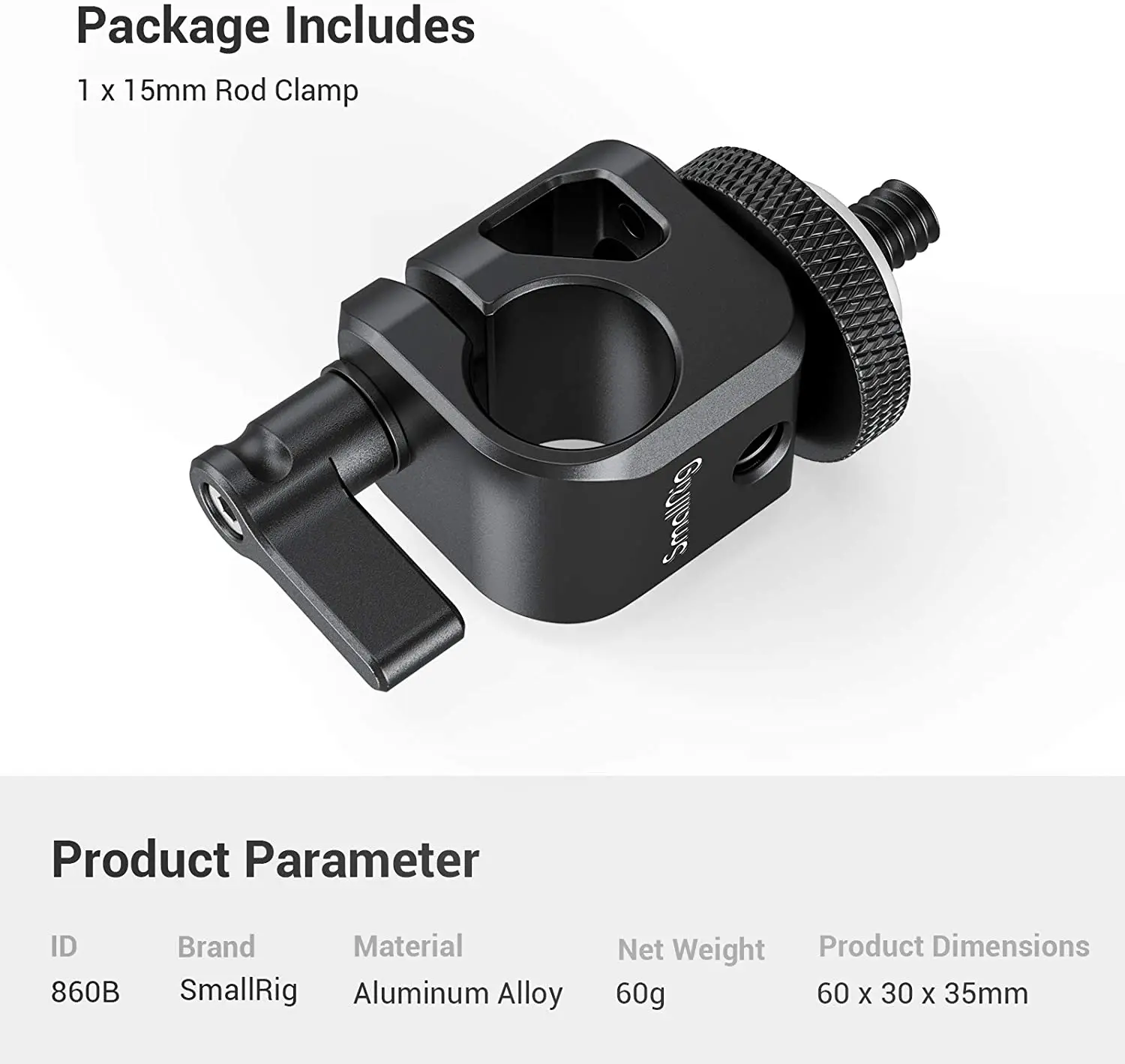 SmallRig Dslr Rig System 15 мм стержневой зажим с 14 резьбовым отверстием для прикрепления звукозаписывающее устройство-860B