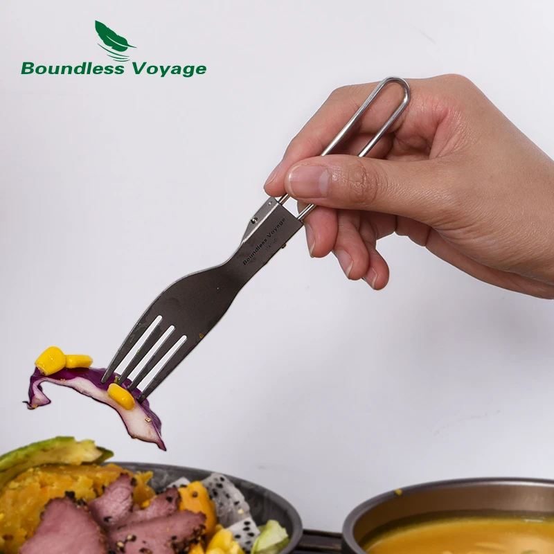 Титановая Складная ложка Boundless Voyage, набор вилок, посуда для кемпинга на открытом воздухе, набор столовых приборов