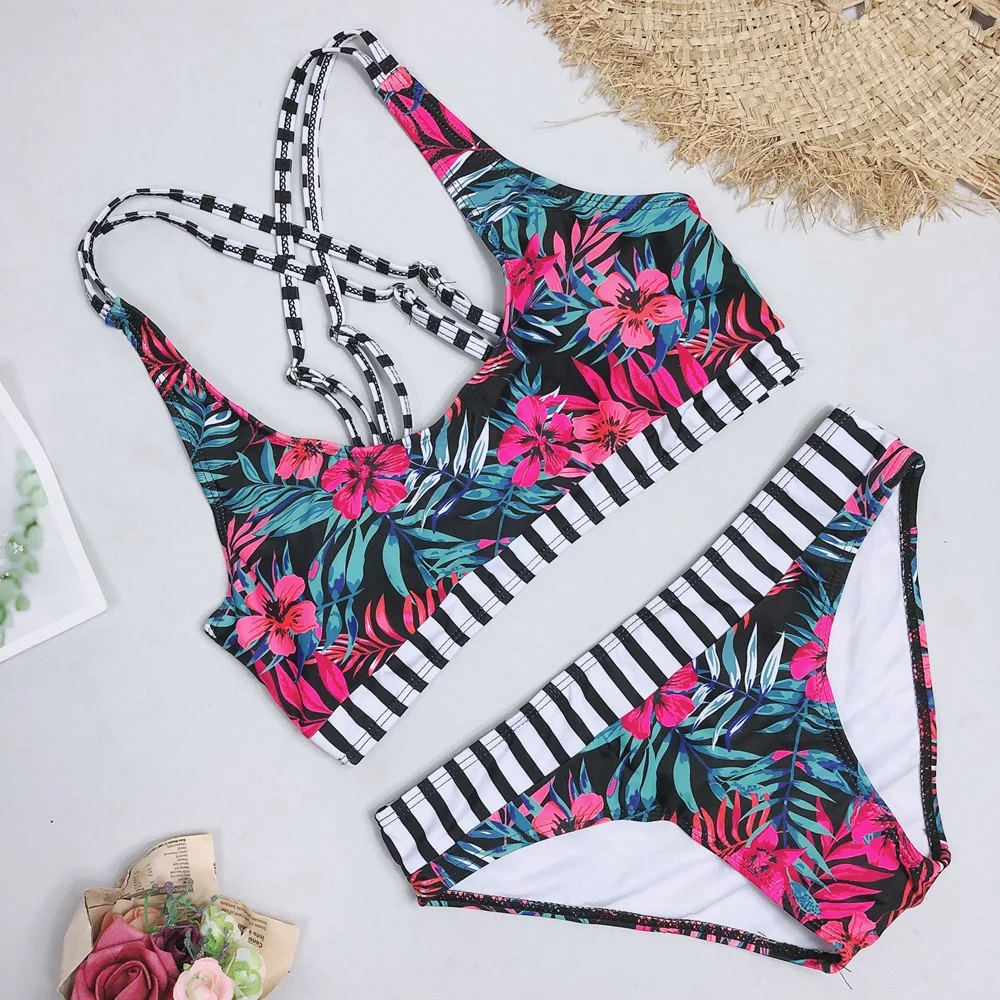 2021 новый сексуальный полосатый пляжный комплект бикини женский ку...