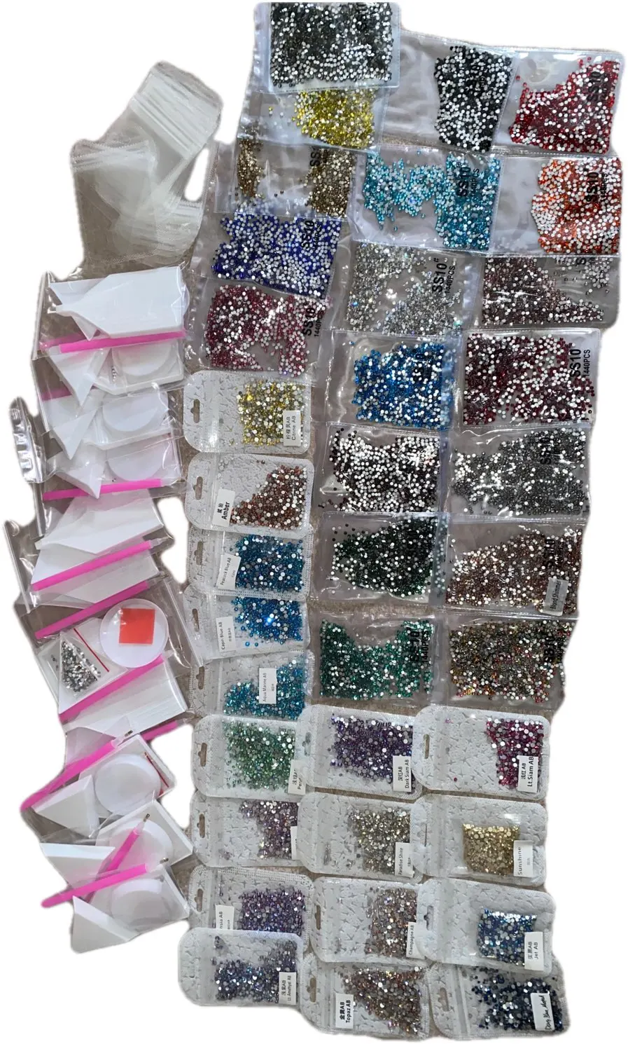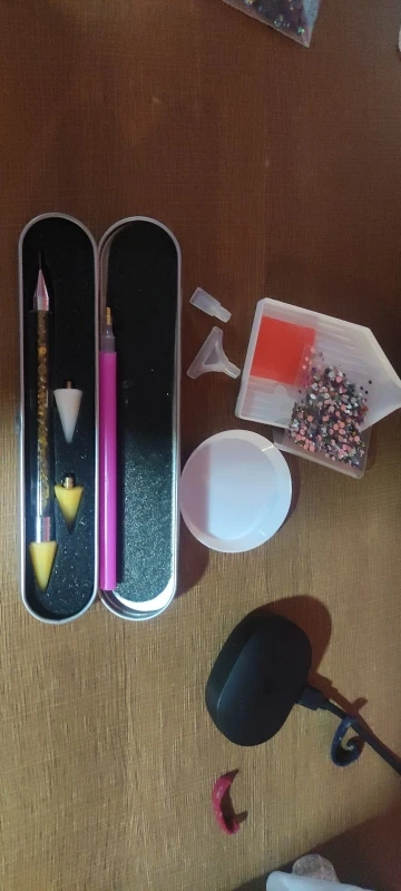 Товар, как описано. Хотя если вы хотите полный пакет страз, вы будете разочарованы, это было около половины того, что изображено. Я не заказывал стразы, только инструменты.