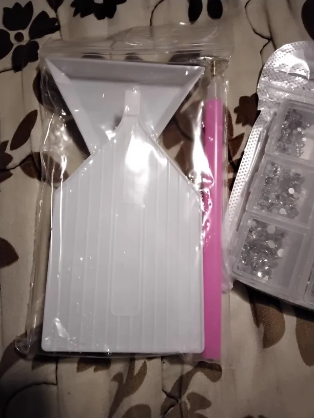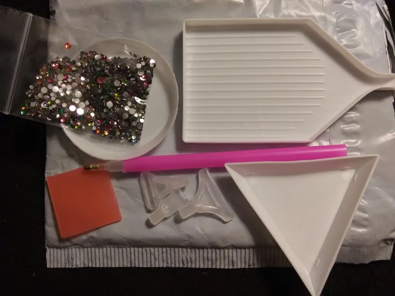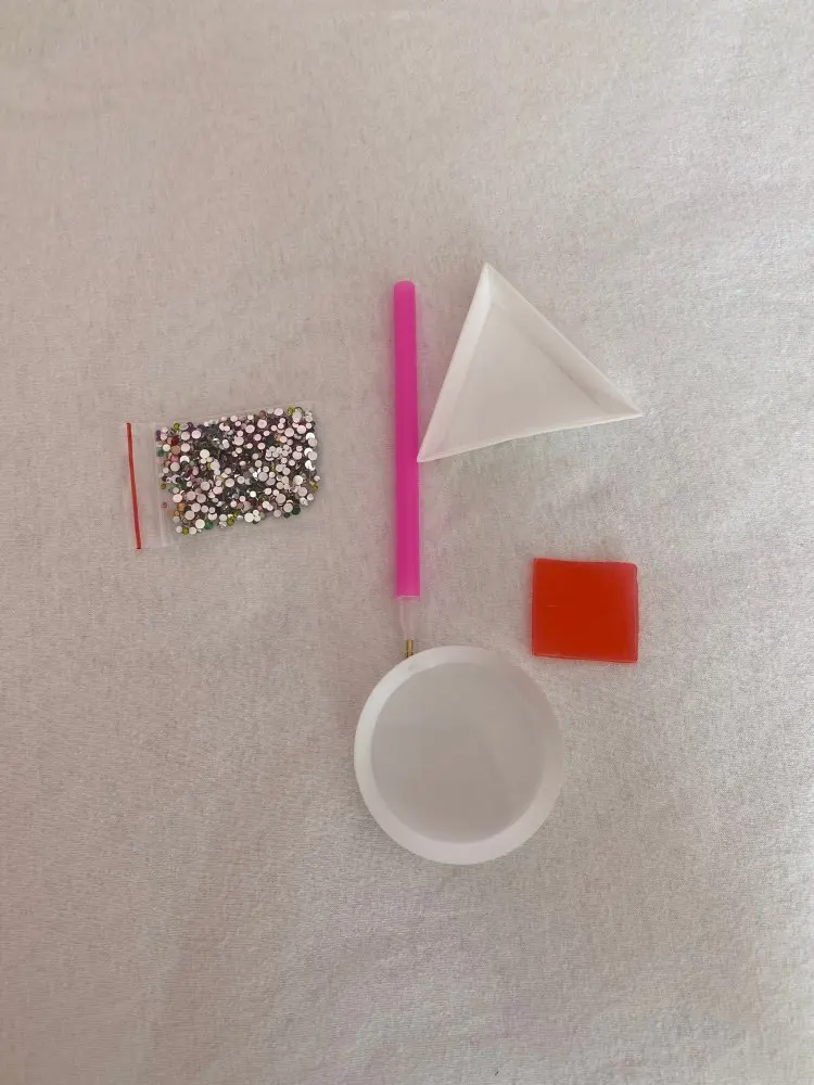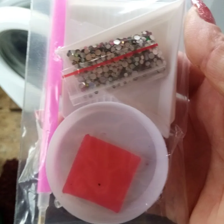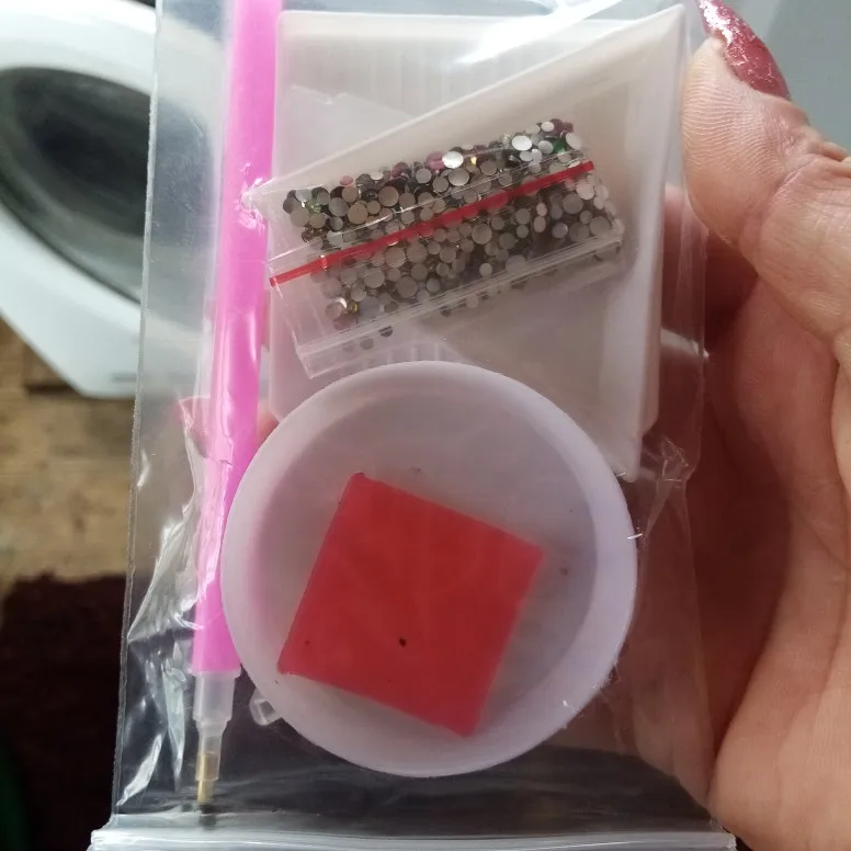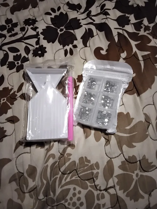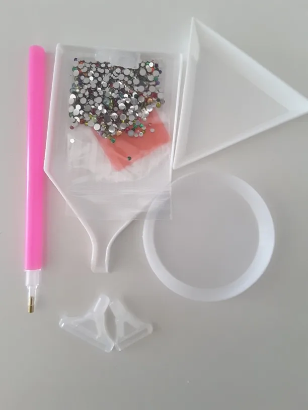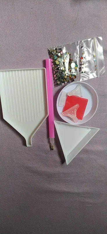 отправка быстрая, доставка около 2 недель. Комплект полный, описанию все соответствует. стразы плоские. Очень удобно в работе. кусочек воска только поломанный(