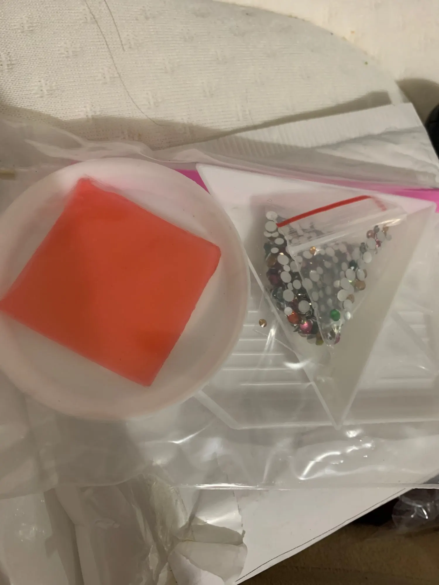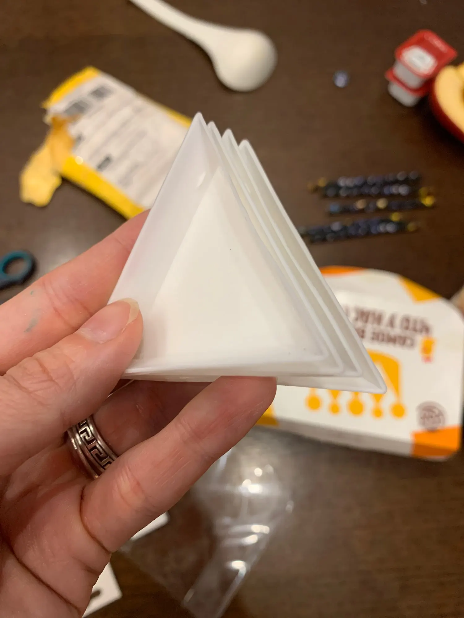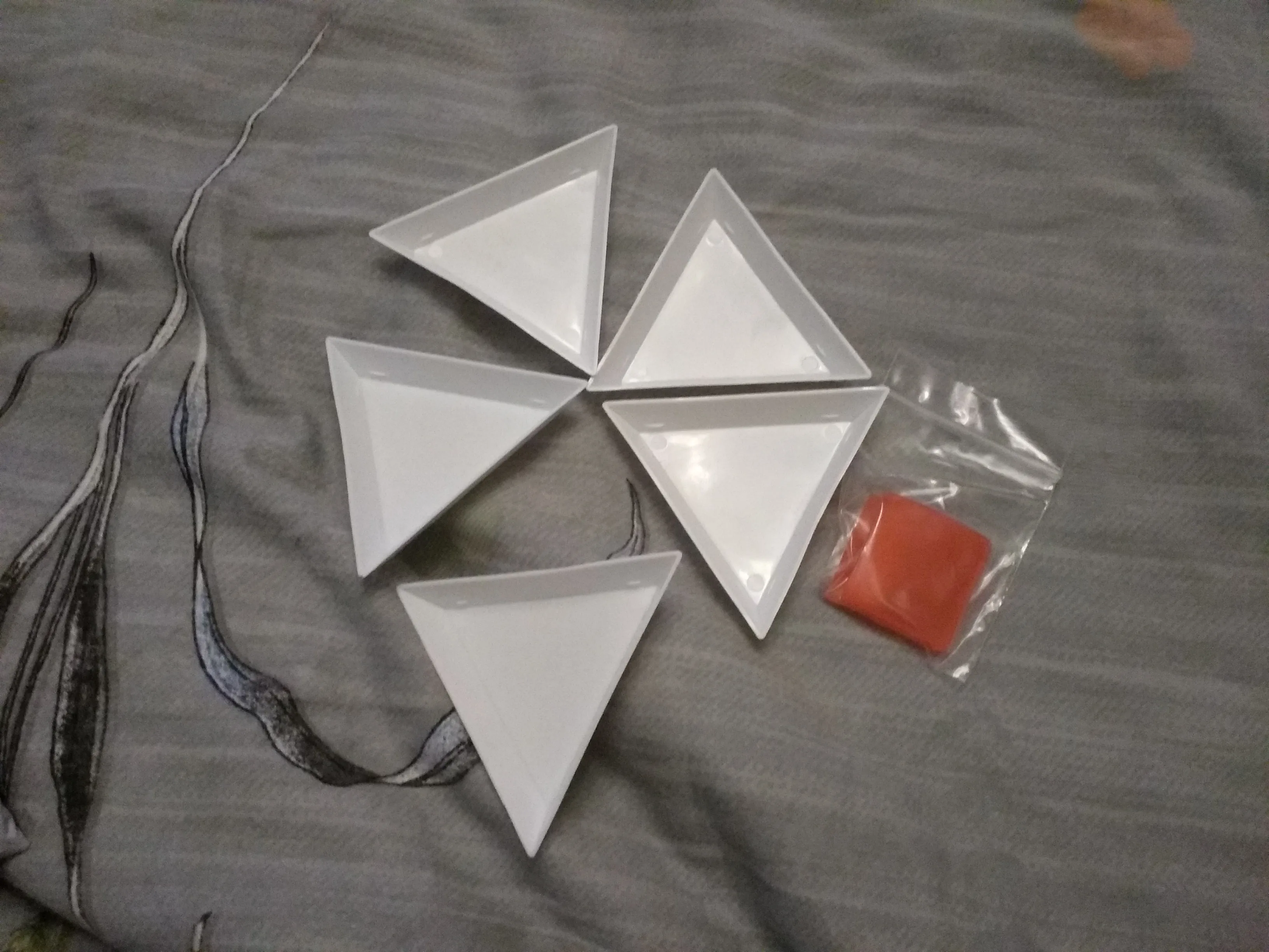 Маленькие треугольные платформы, чтобы не смешивать цвета или формы маленьких аксессуаров (жемчуг, блеск...)