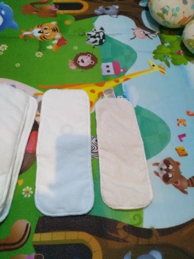 отличные подгузники и прекрасные вкладыши. нам 3 месяца, на вес 7500г сидят идеально, не протекают. стираются легко, сохнут быстро.