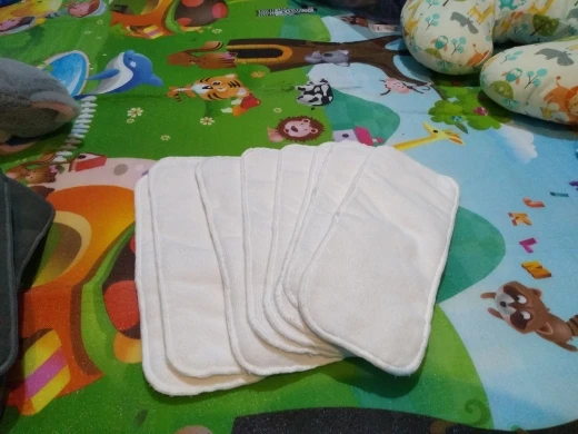 Полученные поглотители хорошего качества и хорошо впитывают влагу, но микрофибра не может быть использована при непосредственном контакте с кожей, которую ребенок использовал в карманных подгузниках. Поглощает в среднем около 200 мл мочи. Они быстро сохнут И моют на ощупь.