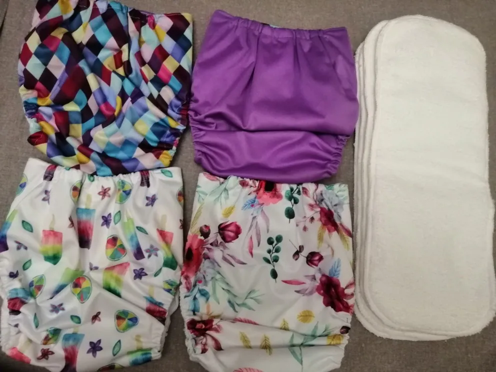 Подгузник из многоразовые подгузники из ткани, регулируемый, от 3 до 15 кг, 4 шт.компл.