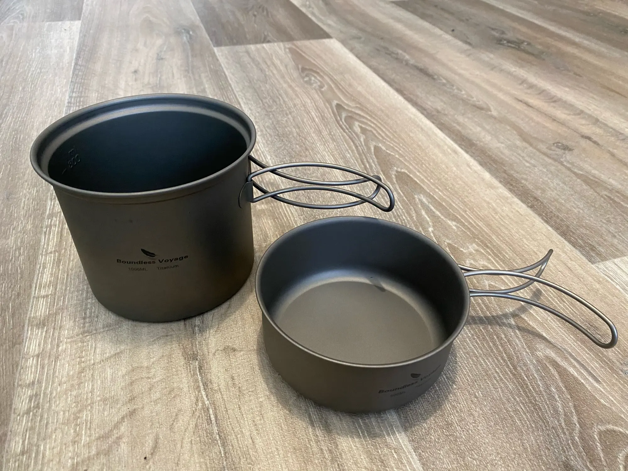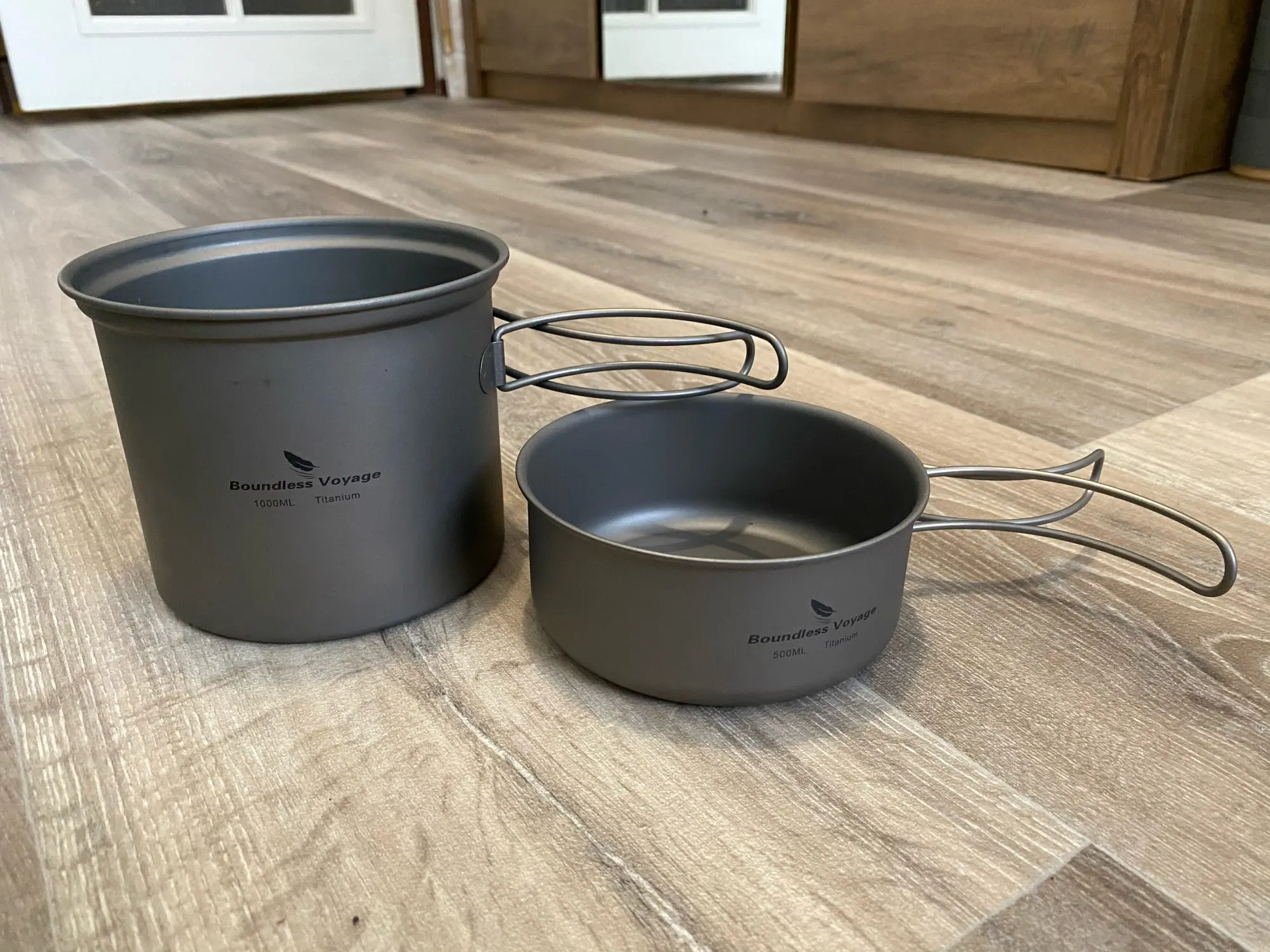 Набор из титановой чаши для пикника, со складной ручкой, 1000 + 500 мл