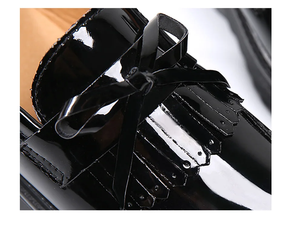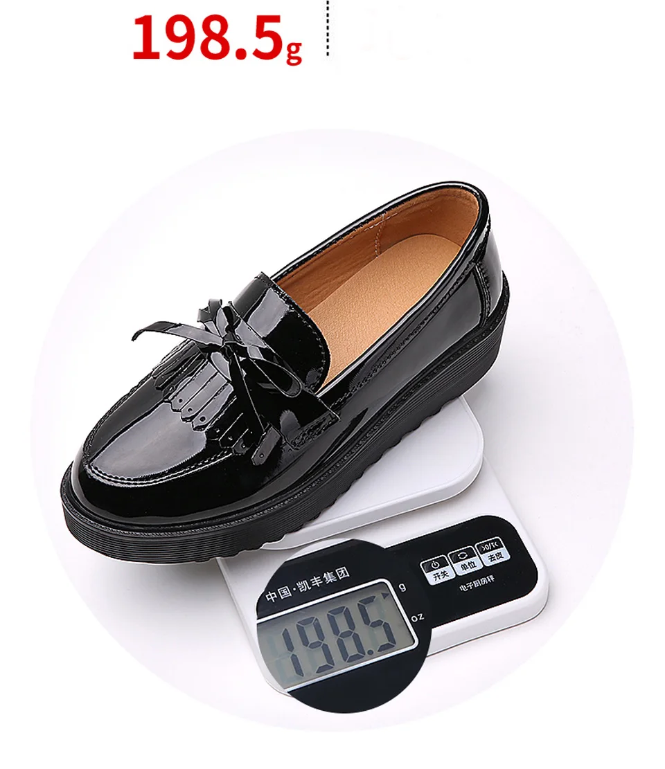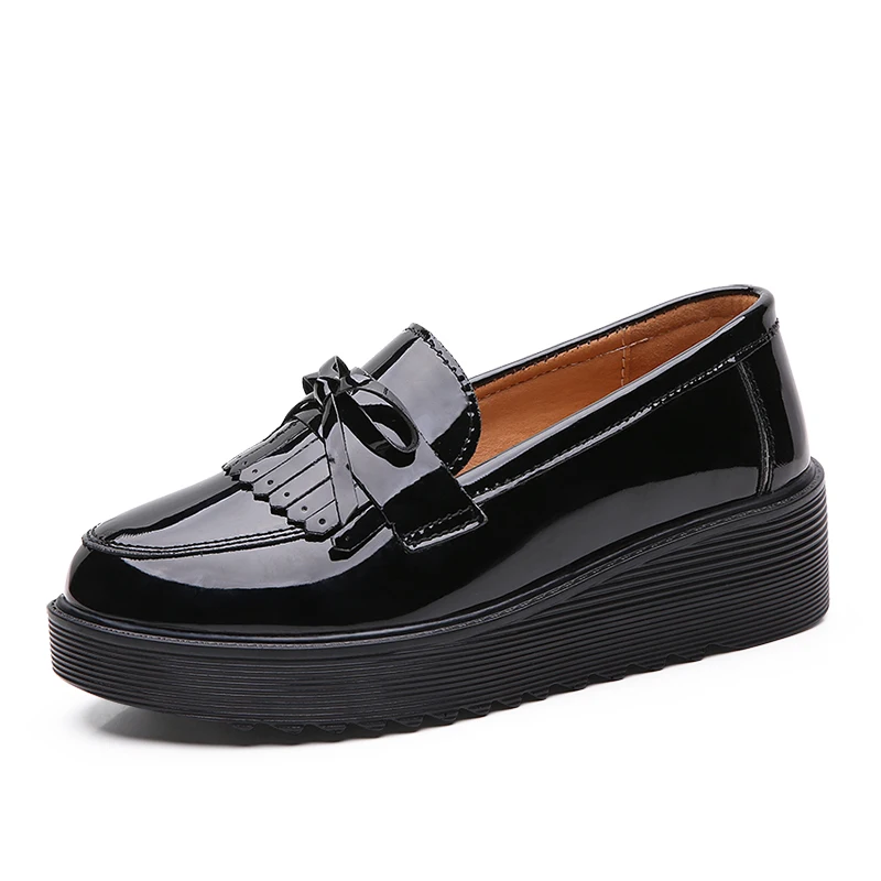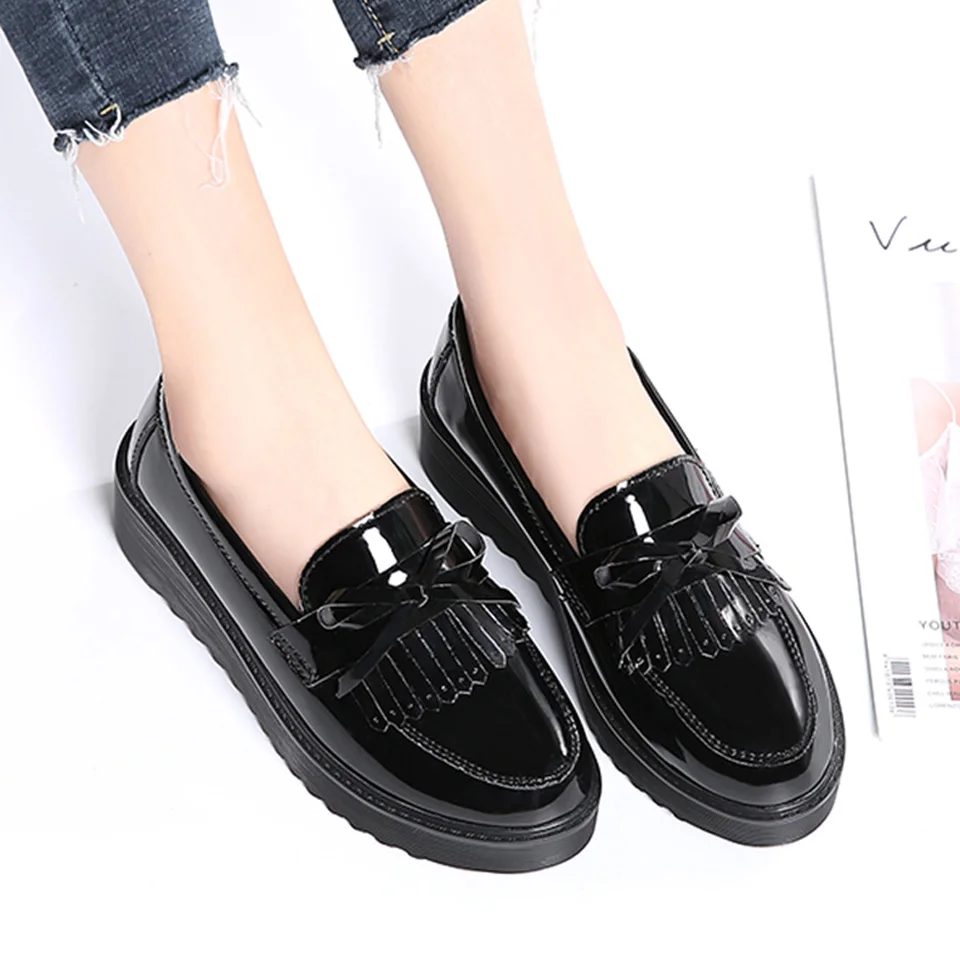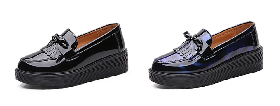 Женские лоферы на плоской подошве EOFK, черные повседневные туфли из лакированной кожи на платформе с круглым носком, без застежки, весна-осень