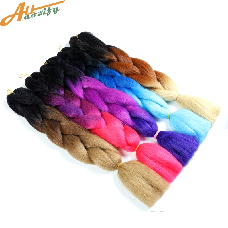 Allaosify большие синтетические косы наращивание волос для вязания крючком 100 гшт. 24 дюйма синие розовые цветные длинные афро женские плетеные волосы