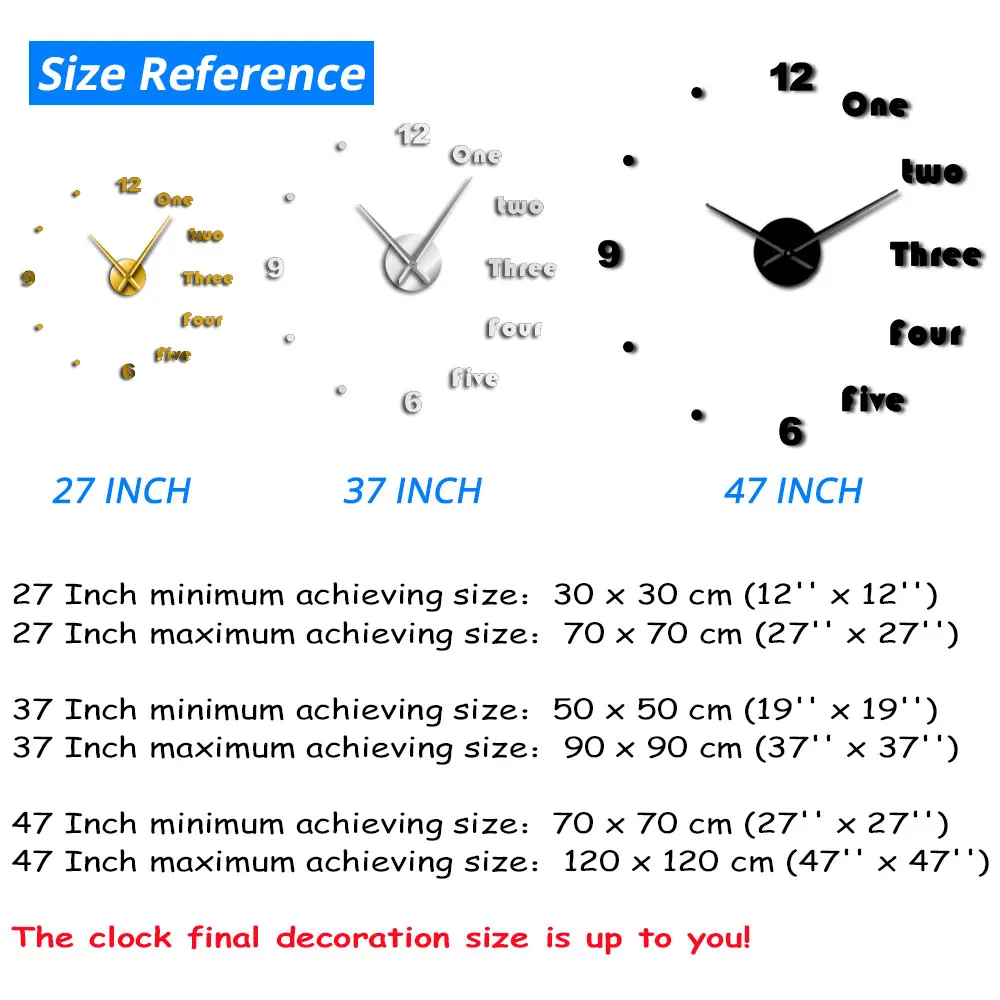 Часы нужны и используются время от времени по ясной причине, чтобы дать информацию о времени в течение дня. Современная версия часов используется не только для демонстрации времени, но и для украшения интерьера комнаты. Это захватывающая вещь, особенно для настенных часов DIY. Современный дизайн родил потрясающий дизайн часов. Эти удивительные дизайны действительно отличные варианты, которые нужно испробовать, и дизайн, безусловно, возбудит любителей DIY. Многие настенные часы изготавливаются на заказ и изготавливаются в домашних условиях.Эти часы обычно также большие по размеру. Попрощайтесь с маленькими настенными часами и Поздоровайтесь с большими и более интригующими большими часами на стене. Лучшие новости, каждый может сделать эти удивительные часы дома, если у них есть достаточно инструментов и материалов, и немного терпения.Материал наклейки: ЭВА пена (этиленвинилацетат)Материал часов: акрил с зеркальным эффектомЧасовая стрелка: 31,5 см/23,5 смМинутная стрелка: 39 см/31,5 смЧасовой механизм: 12 см/10 см