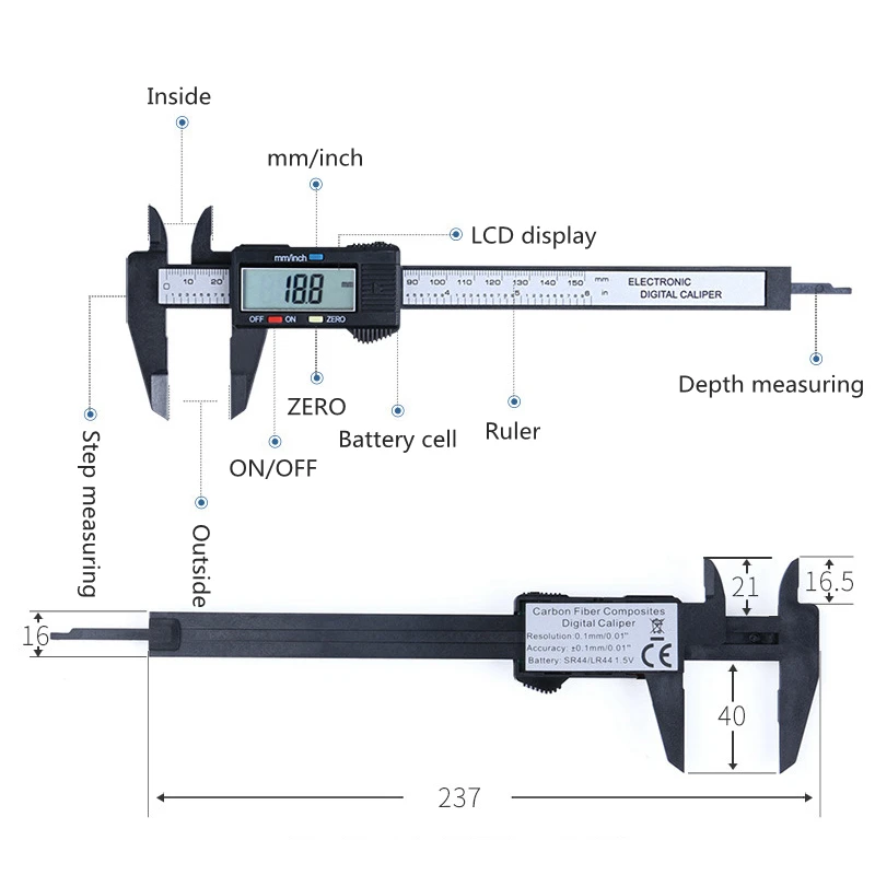 Цифровой штангенциркуль 150 мм, 6-дюймовый ЖК-дисплей, микрометр из углеродного волокна и пластика, цифровой штангенциркуль 0,1 мм, микрометр Paquimetro