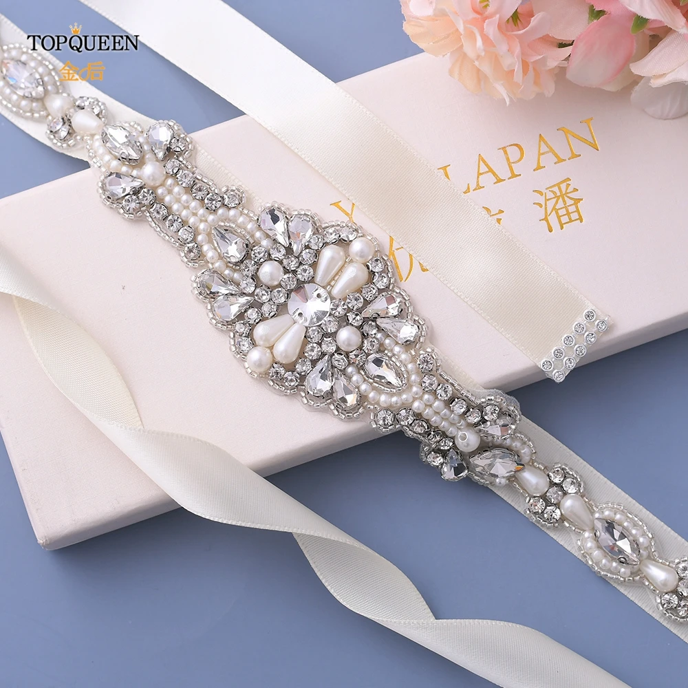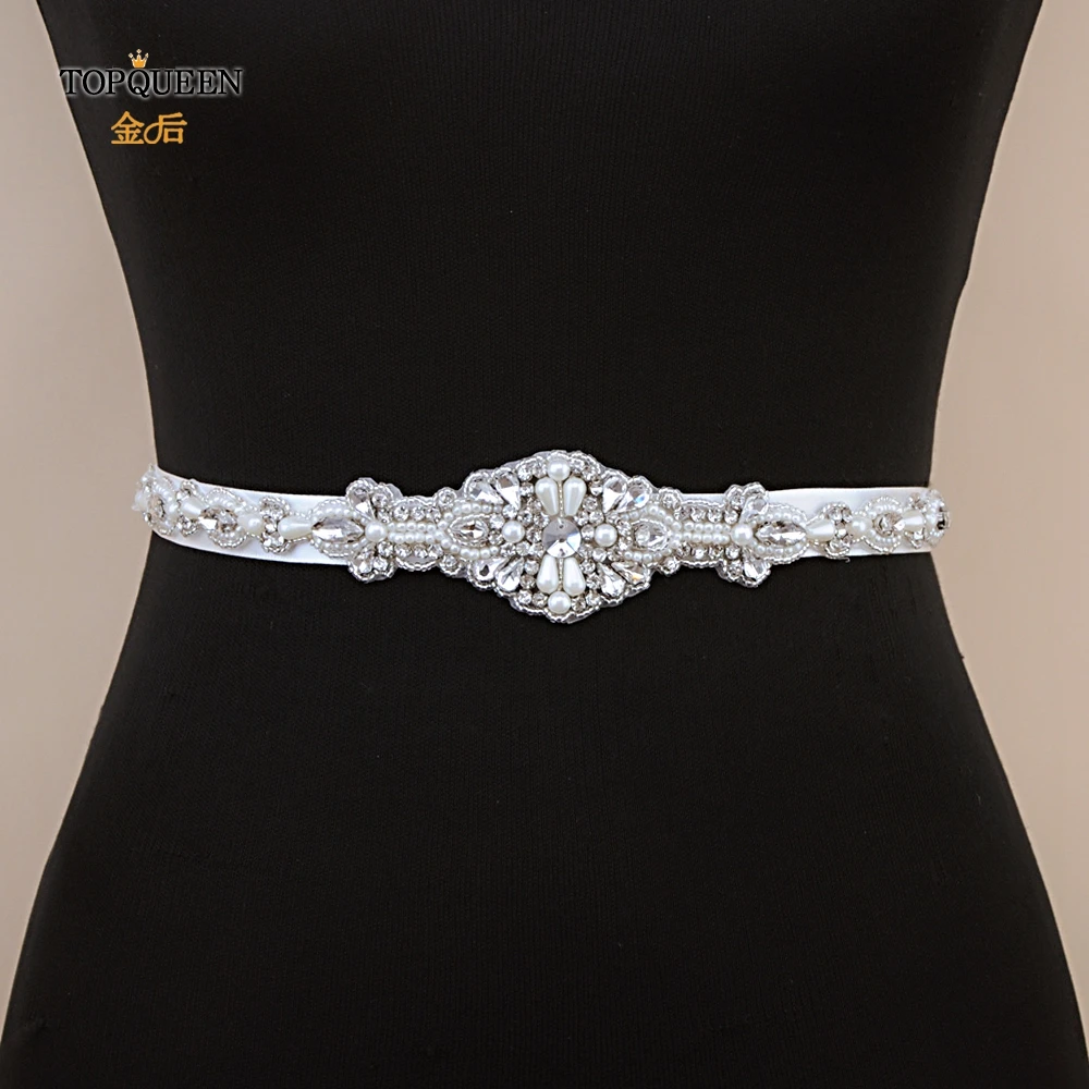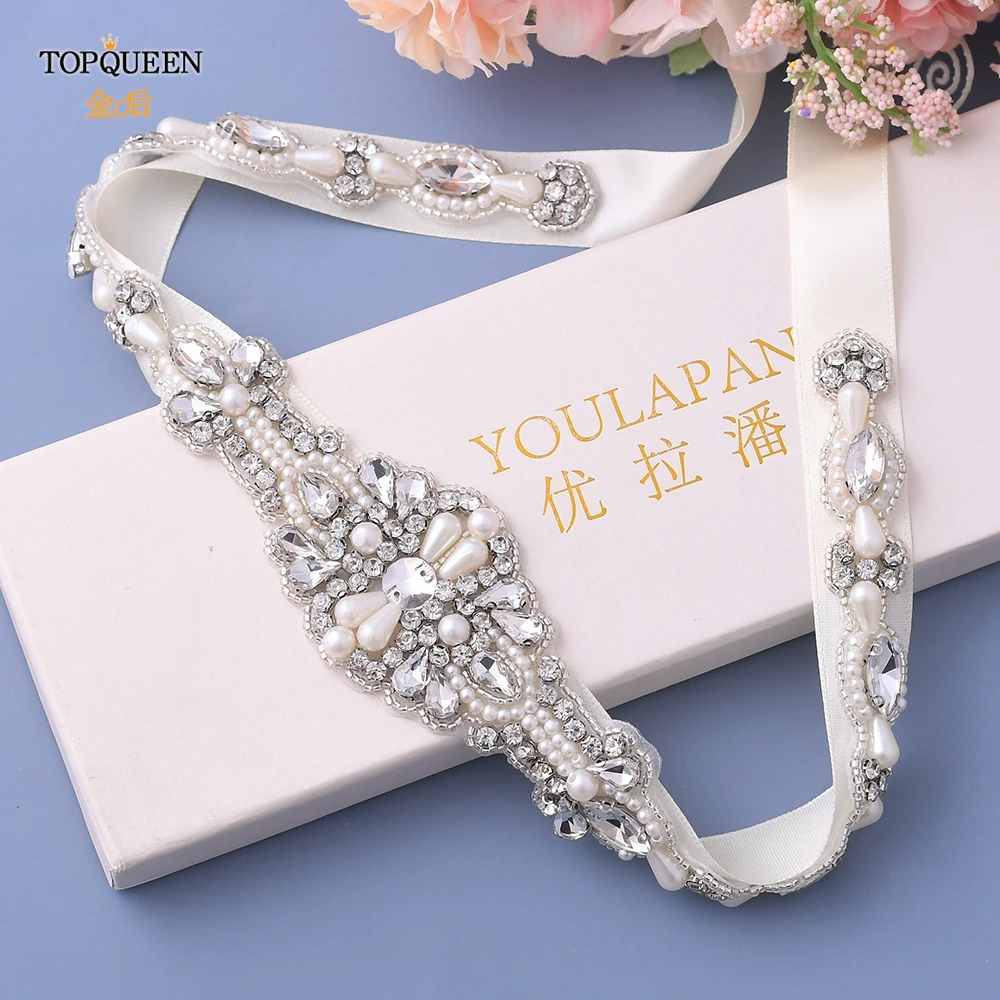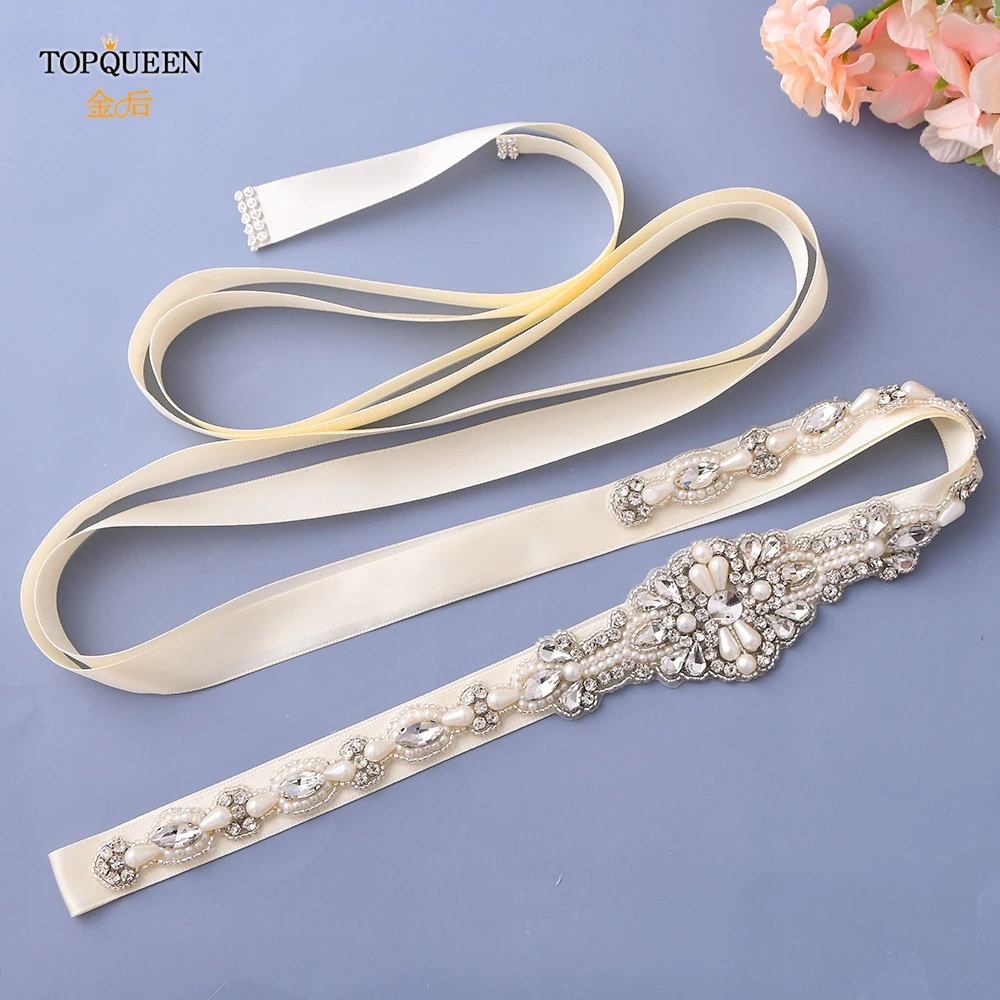 Пояс Свадебный TOPQUEEN S388, женский пояс с жемчугом, украшенный бисером, лента для подружки невесты