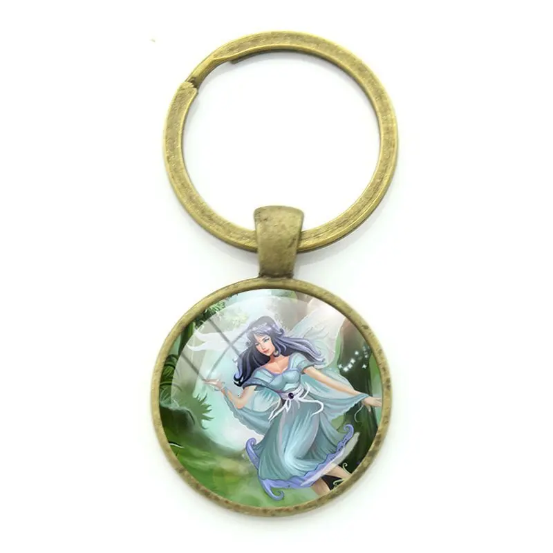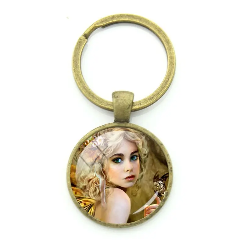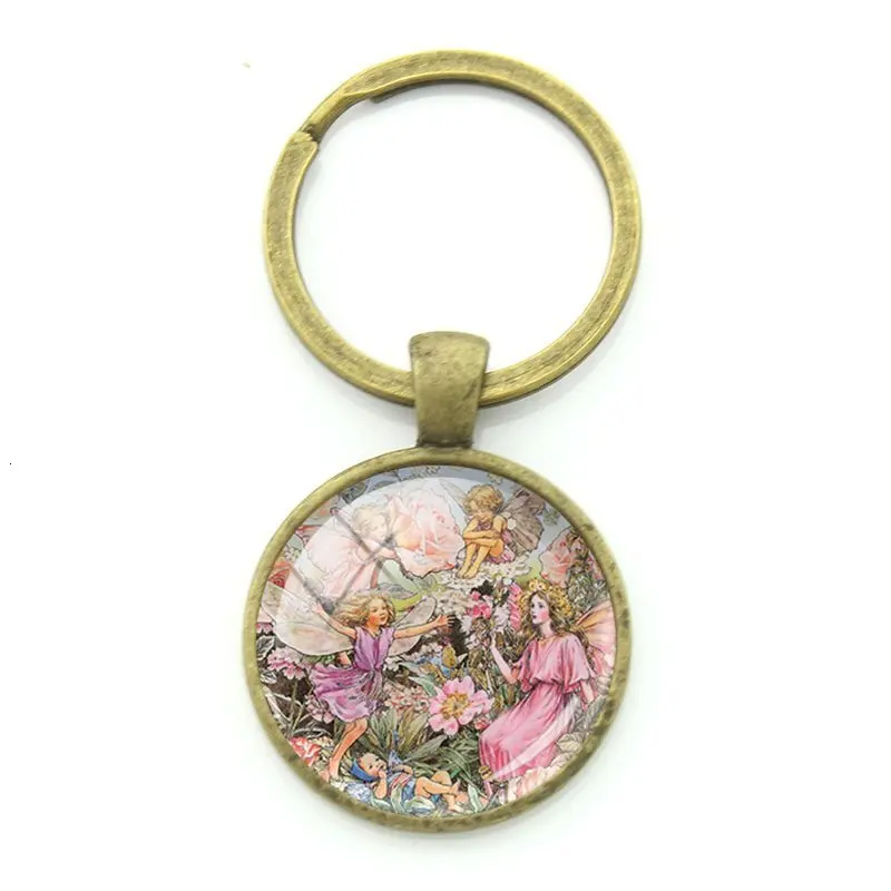 Винтажный Сказочный брелок для ключей сад крылья бабочки девушки цветок фея детское искусство Брелок-талисман кулон мешок FQ322 Изображение продукта: