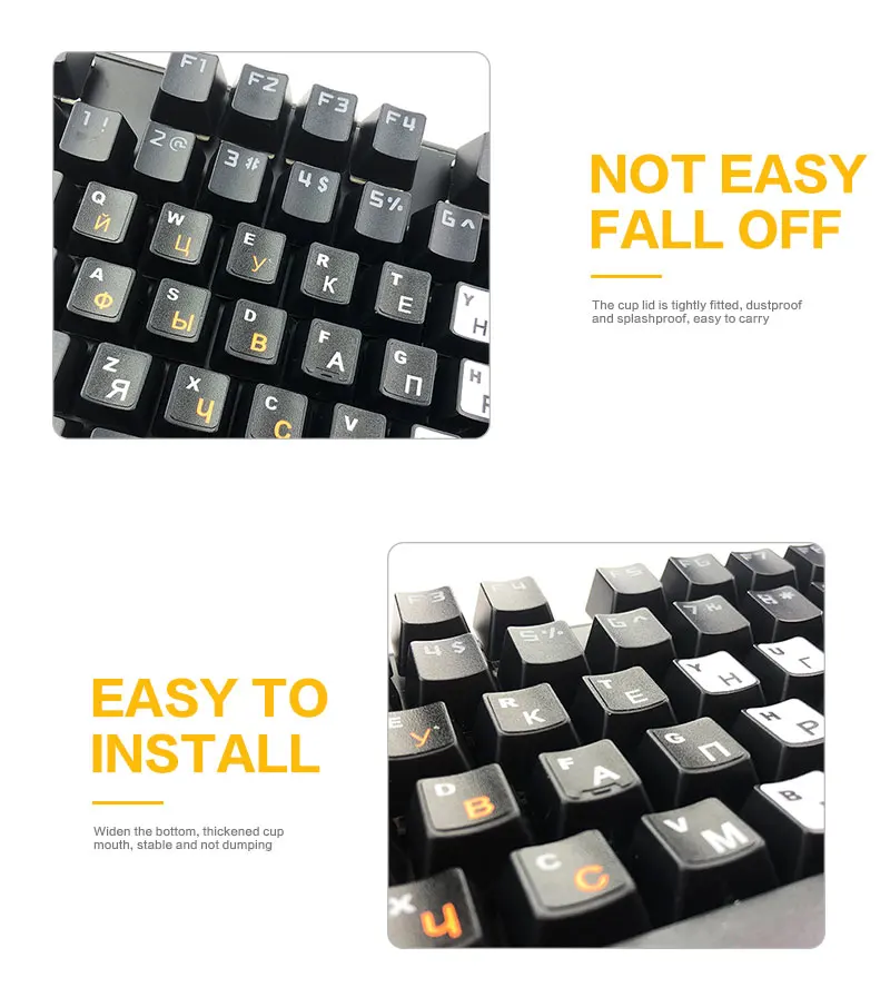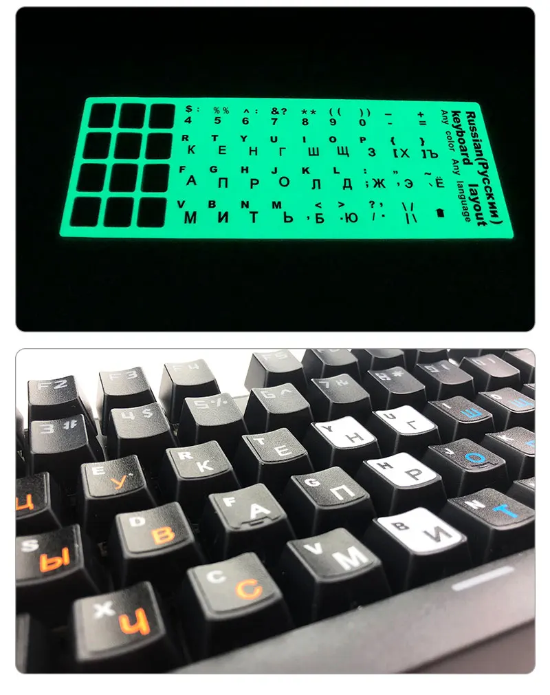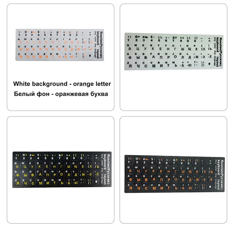 Будьте внимательны, читайте отзывы. Заказала оранжевый комплект. АБСОЛЮТНО не виден ни на чёрной, ни на серой клавиатуре. Всем удачи!