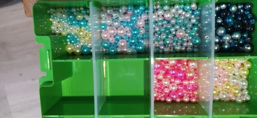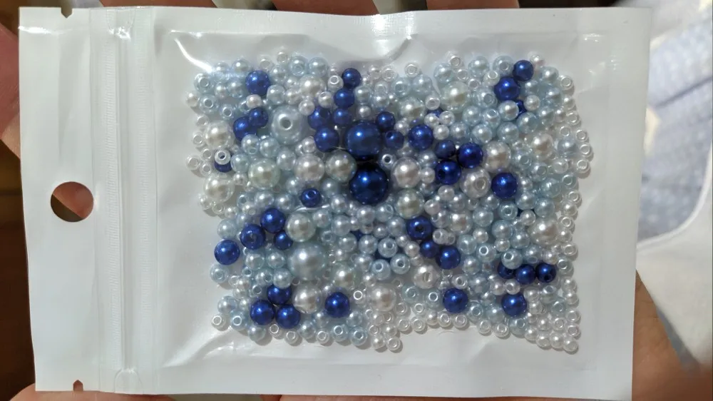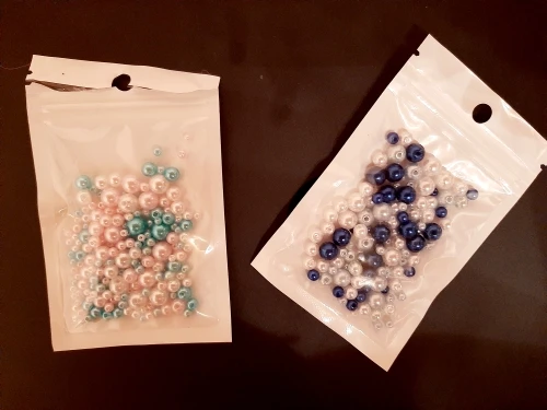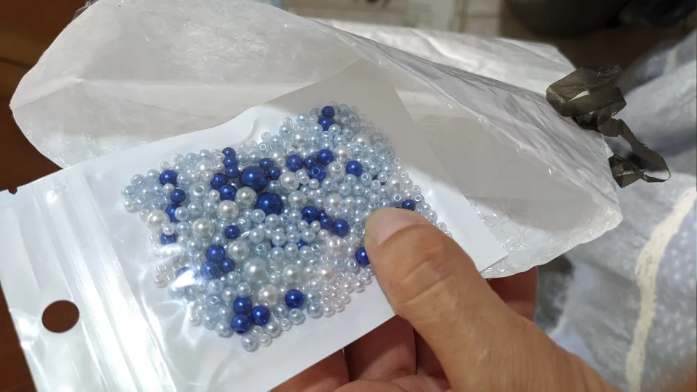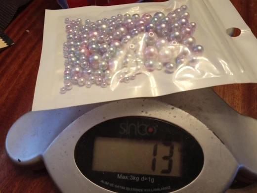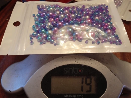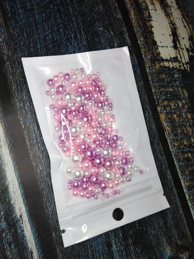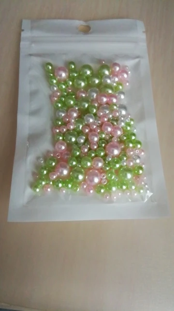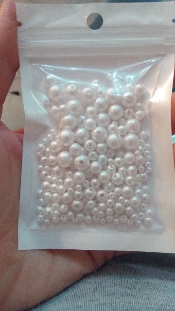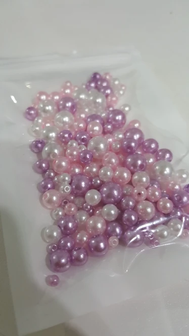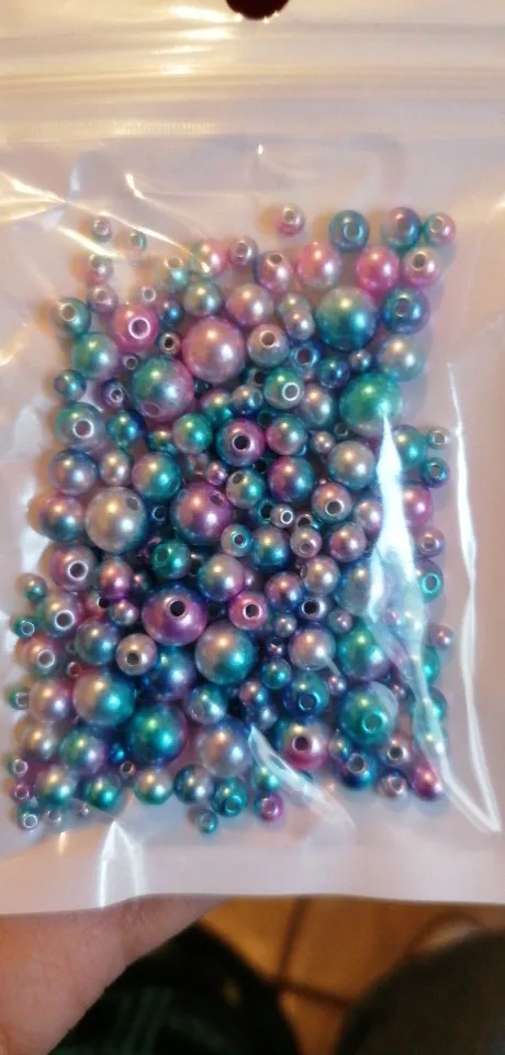 Немного разочаровался, что жемчуг будет бирюзовым, розовым и сиреневым, но, наконец, сиреневый-белый. Отверстия немного туго сделаны, очень обычная отделка для этой упаковки.... Но, по крайней мере, есть несколько размеров vrmt, которые мне подходят. Пластиковые шарики, очень легкие.