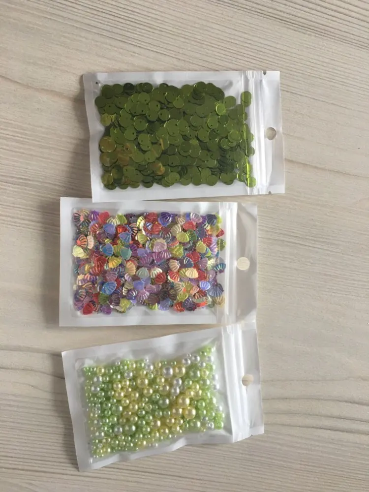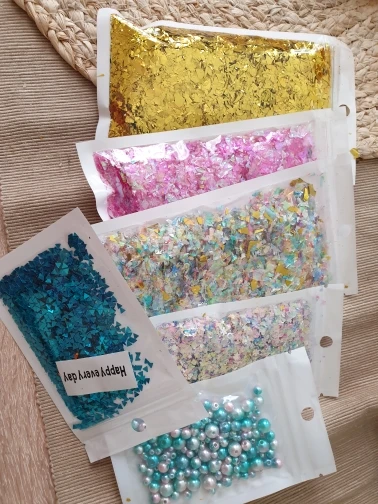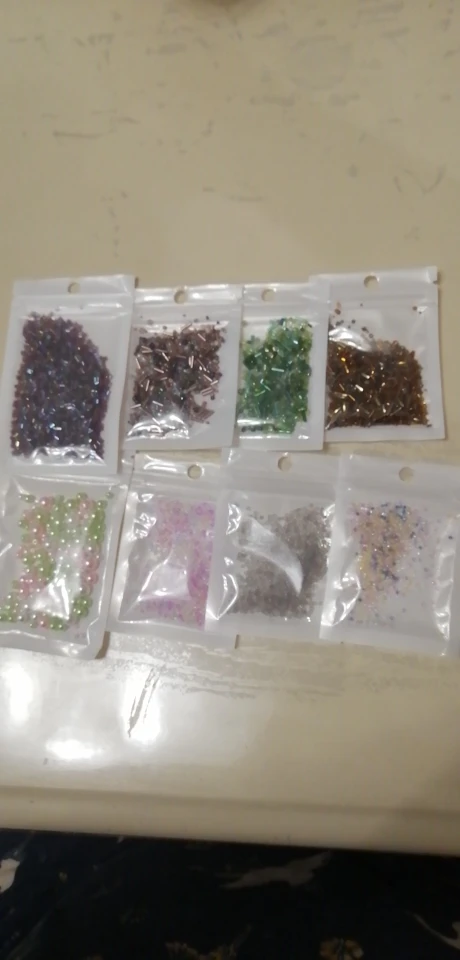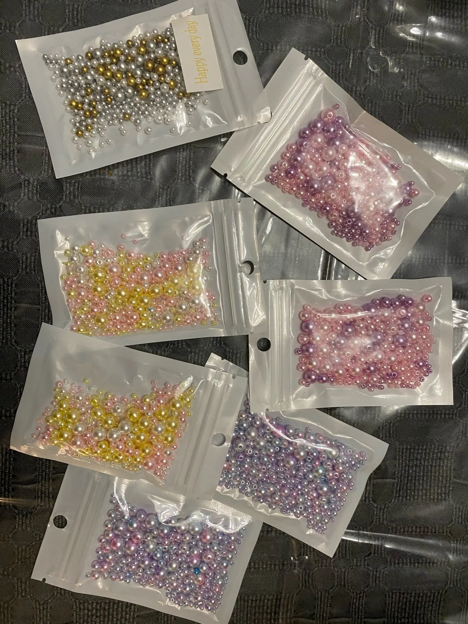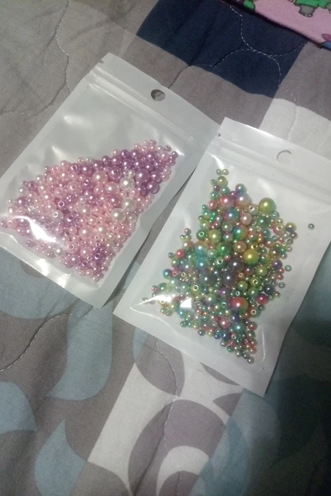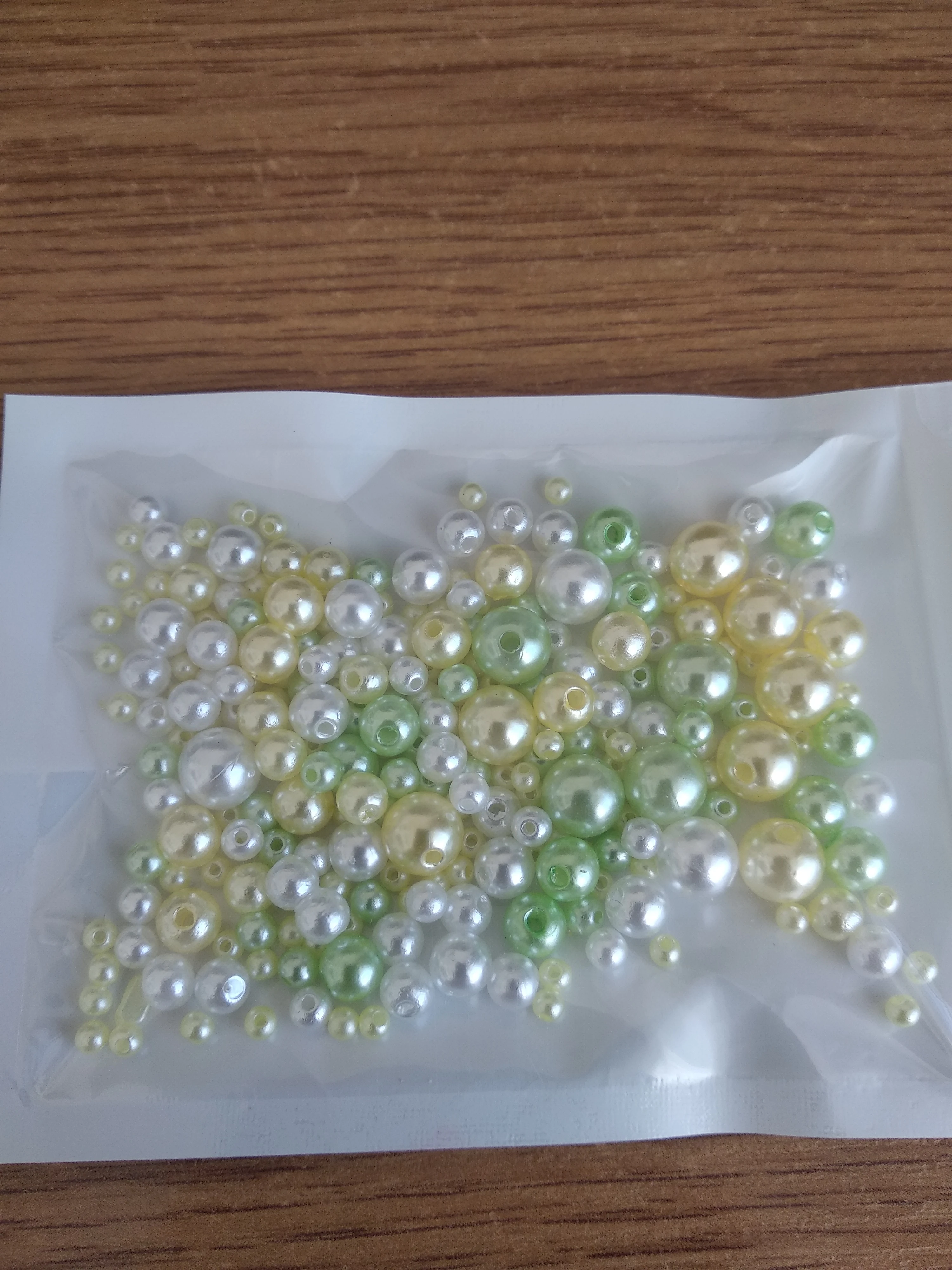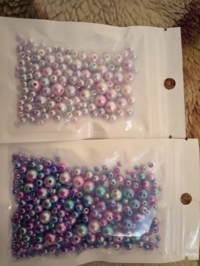 Красивые цвета. Очень легкие бусины. Есть несколько дефектов, которые прилипают друг к другу. Было стыдно, что было так мало шариков 6 мм.