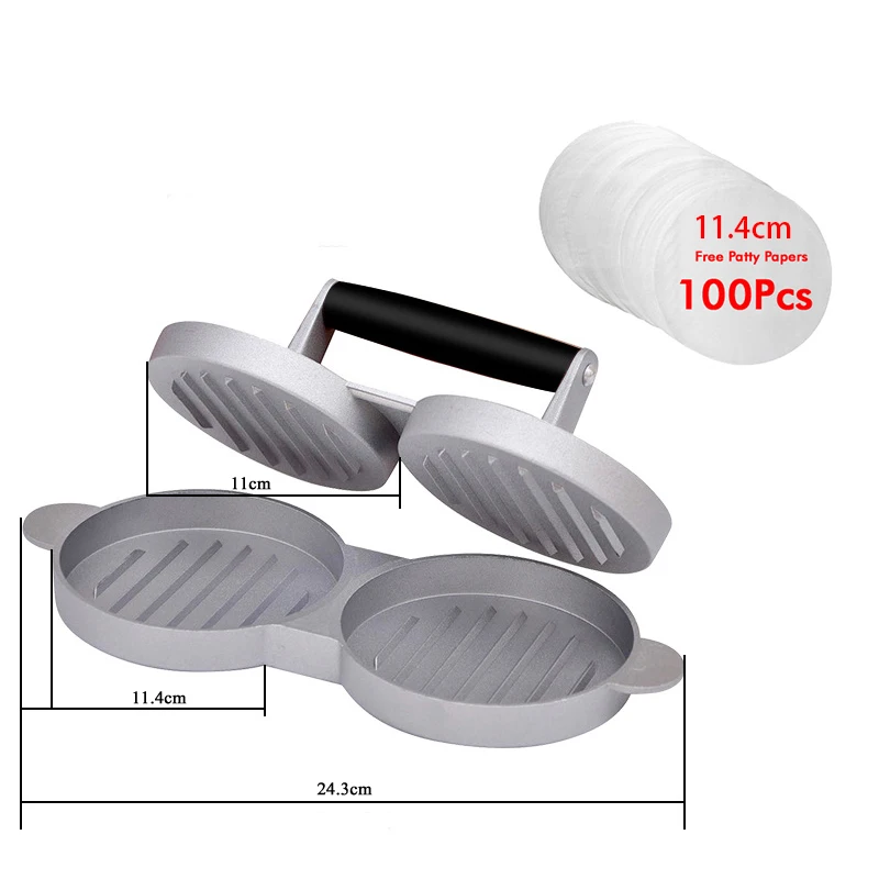 Пресс рабочий, зазоры минимальные. после того как котлета ужаривается размер соответствует нормальной булочке. раздавить две котлеты весом 100 грамм чтобы форма была полностью заполнена сложно. а сделать это покачиванием формы сложно так как она двойная. По этому рекомендую приобрести одинарную форму. Бумажки не понравились, хорошо спрессованные котлеты не вытряхиваются. по этому прессую в полиэтиленовых пакетах. В целом качеством товара доволен, рекомендую. Доставлено быстро.