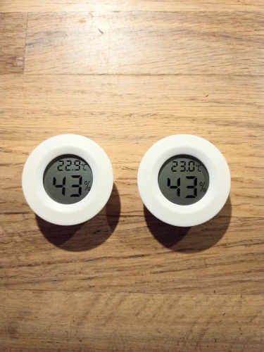 Выбрала эти гигрометры, потому что они на фото выглядят солидно, но они оказались оооочень маленькие)) меньше спичечного коробка, но на качестве это не отразилось. Измеряет, вроде даже точно