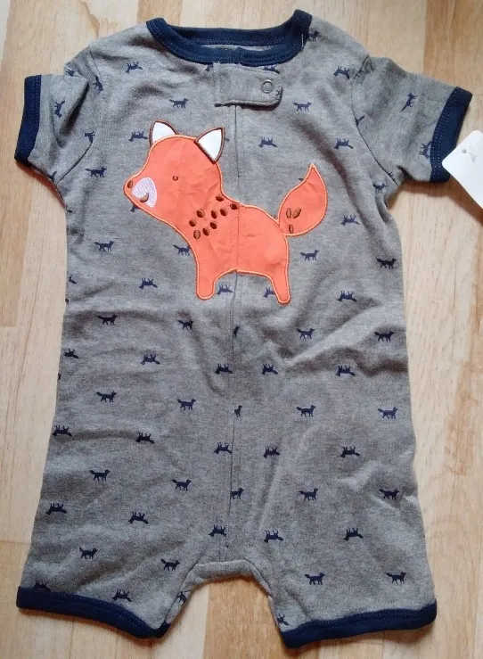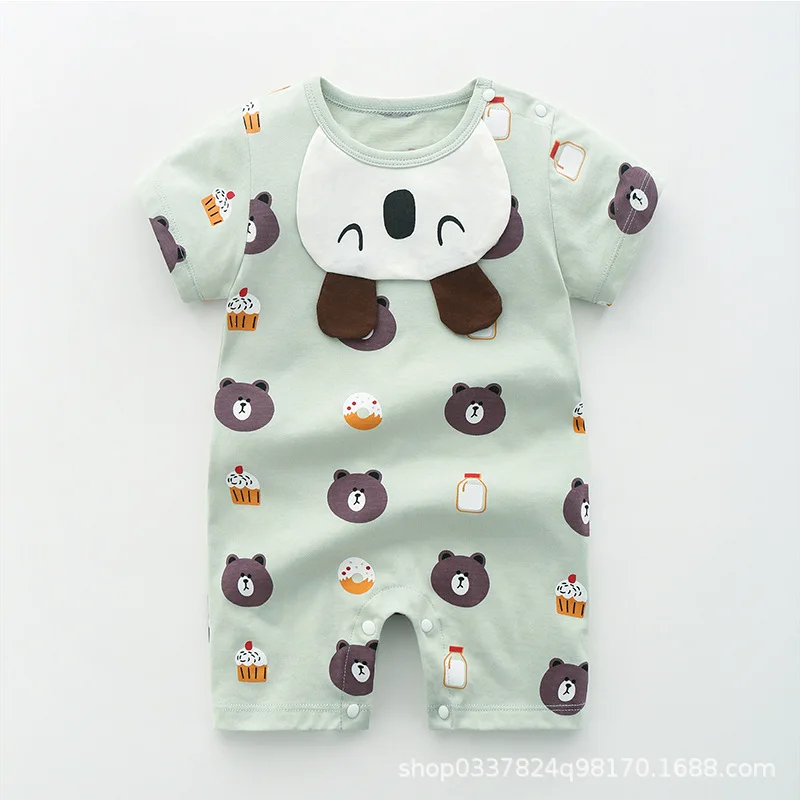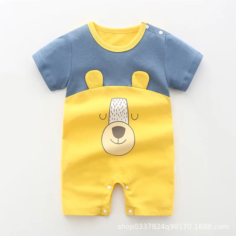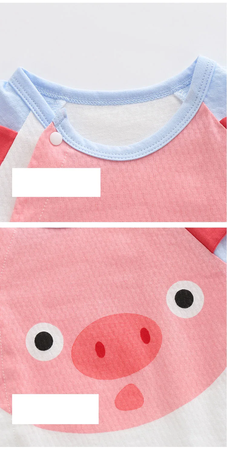 Комбинезон для мальчиков и девочек, 100% хлопок, короткий рукав, Мультяшные животные