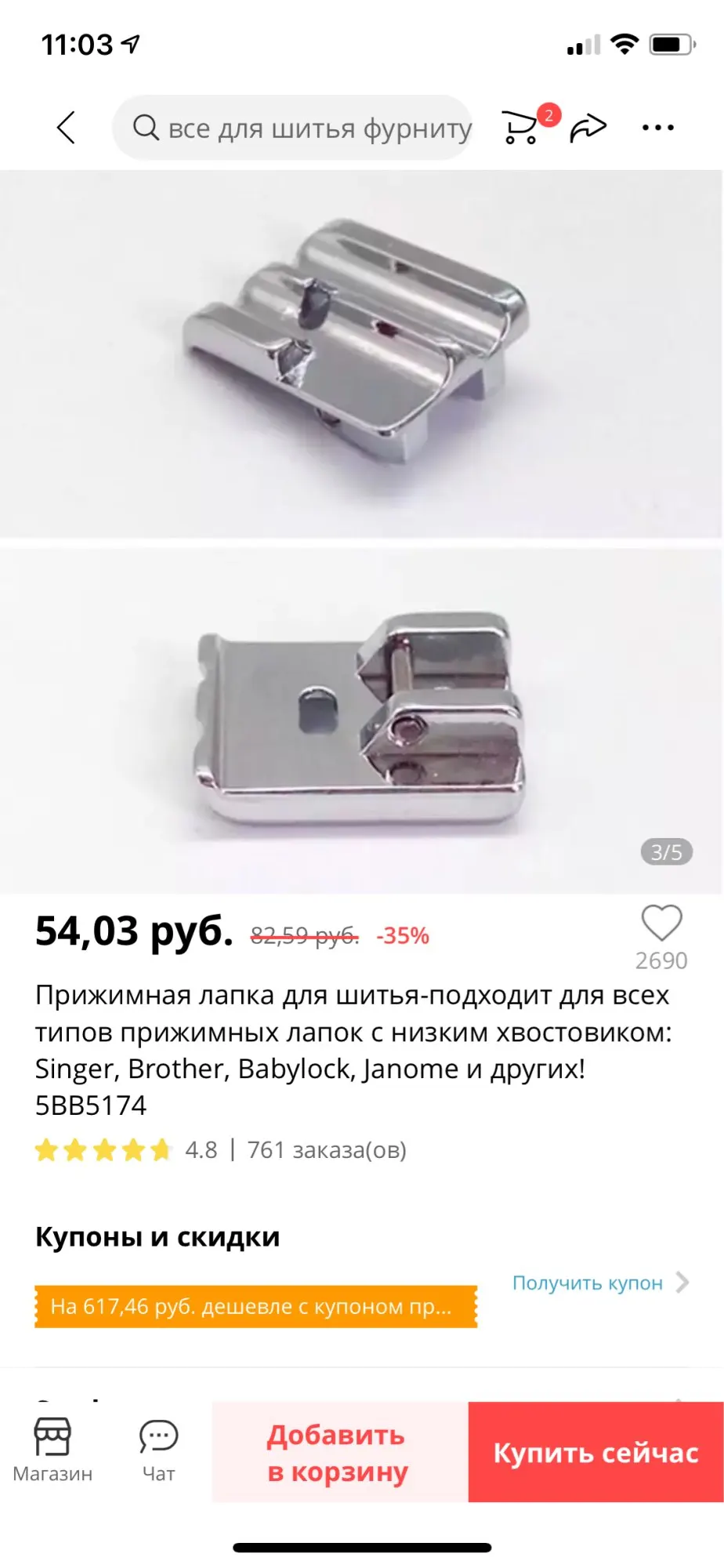Пришло быстро, за месяц. Лапка подошла для машины Подольск, иголка легко проходит в прорезь лапки. Я довольна.