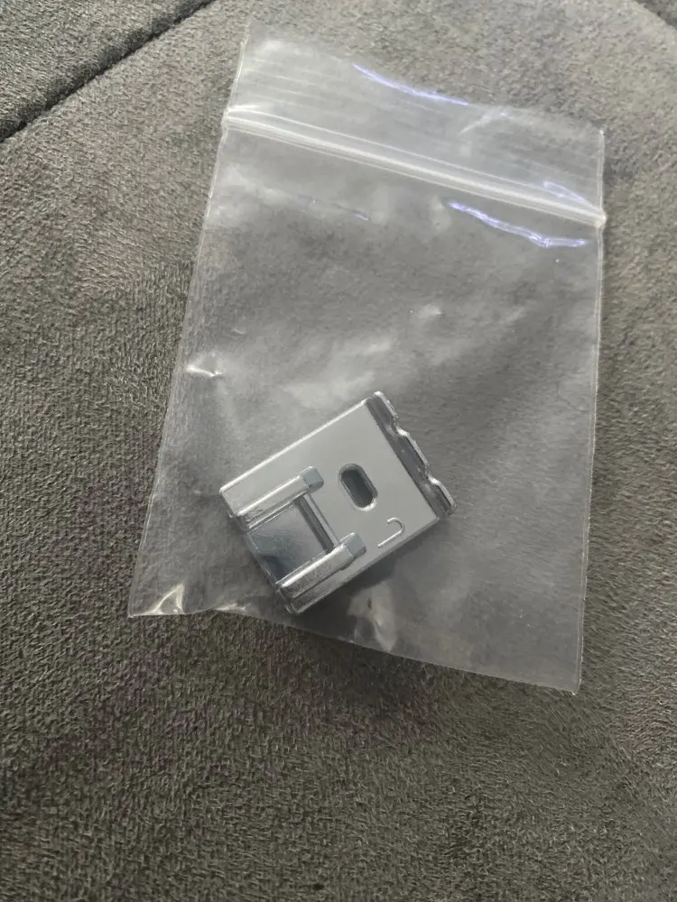 Посылка не отслеживалась, шла не долго, недели 3. Теперь о самой лапке: игла входит в неё немного слева отверстия, крепление к лапкодержателю люфтит примерно на 1мм (это видно на фото). На последнем фото другая лапка от другого продавца, для примера, насколько чётко сидит на лапкодержателе. Шить пока не пробовала, но примерка показала что можно сломать иглу об болтающуюся лапку. Конечно, возможно, мне просто попался брак
