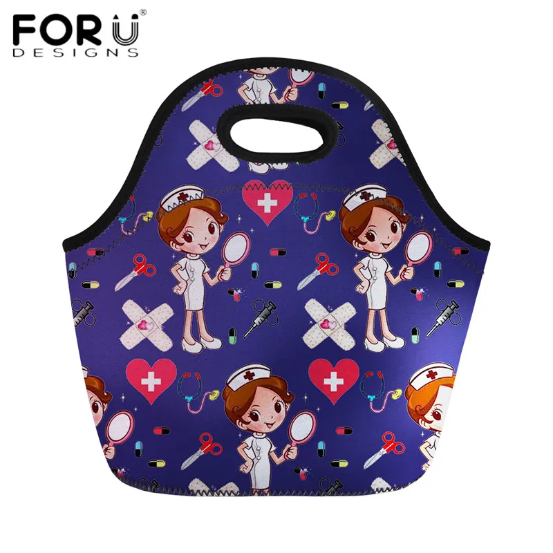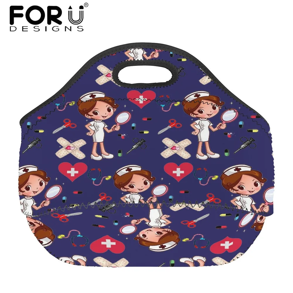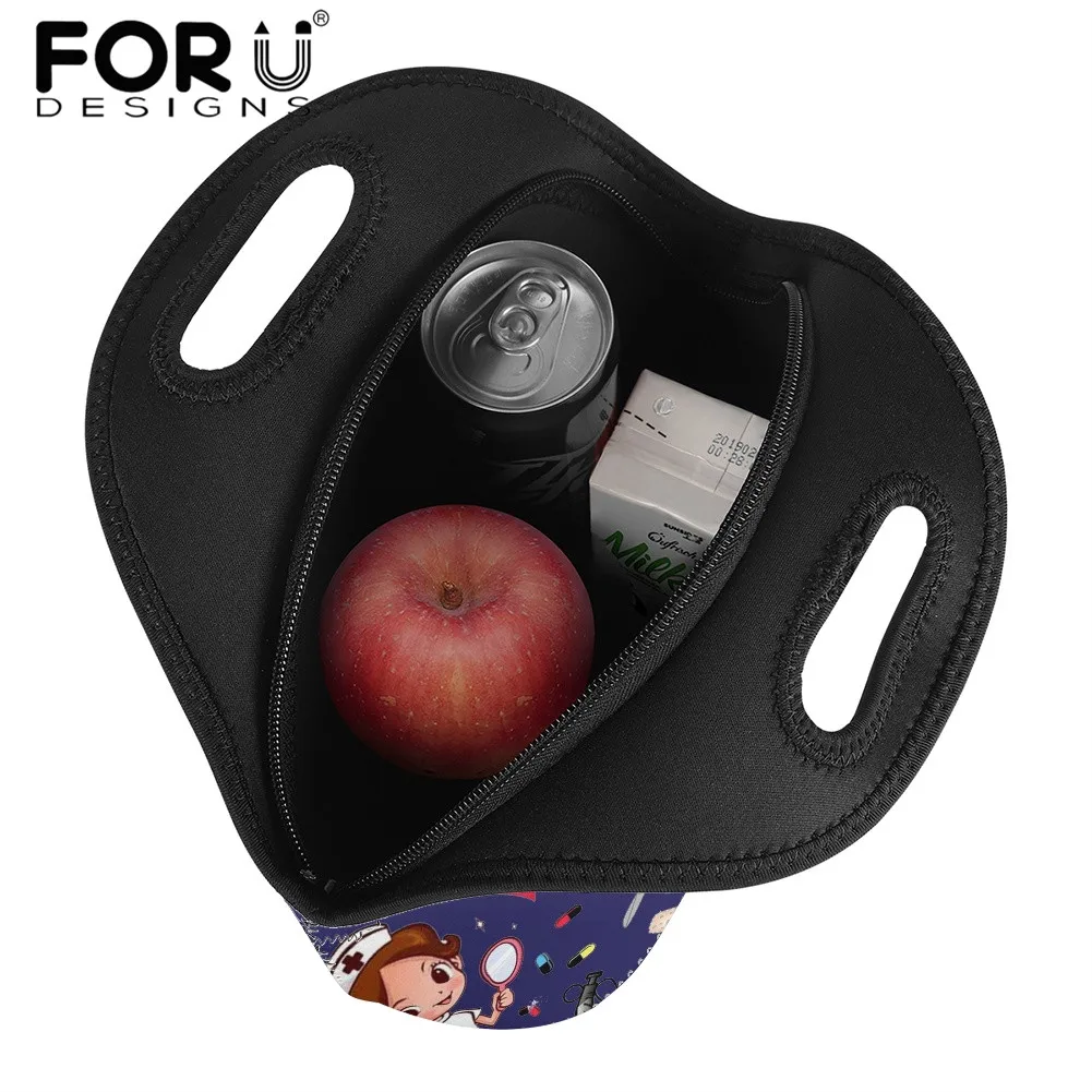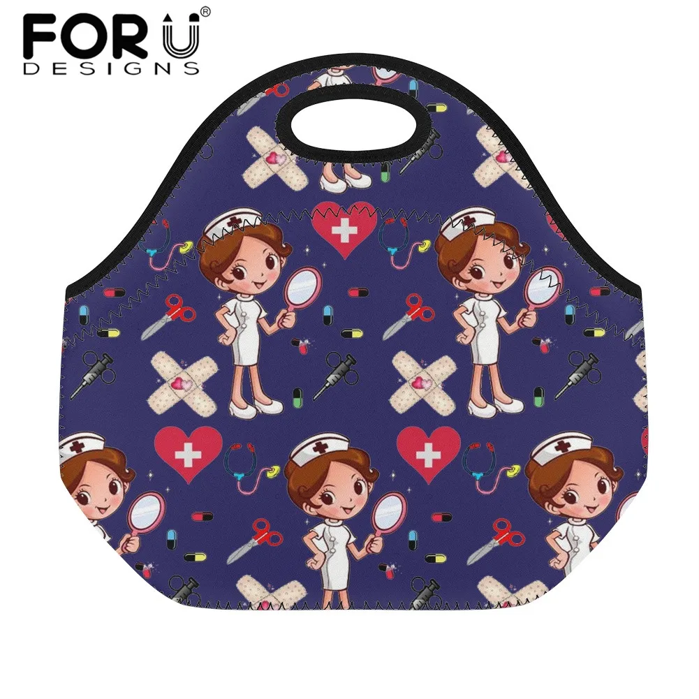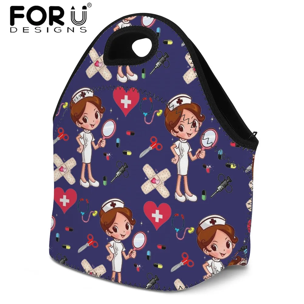 Дорожные Изолированные сумки для обеда FORUDESIGNS для женщин, милые Мультяшные медсестры с принтом, неопреновый чехол для еды, школьный охладитель, теплая большая коробка для детей