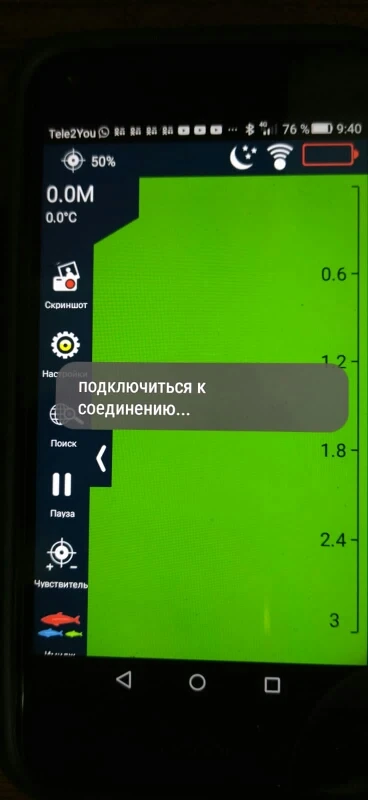 Как только получил товар сразу стал его тестировать. Сначала в кастрюле. Использовал два телефона Самсунг А5 и ZTE blade v10. Самсунг мгновенно спаривается с эхолотом, ZTE с трудом с 3-5 раза, хоть и Андроид 9.0. Для справки: блютуз 4.2 имеет дальность по прямой без препятствий 60 м, пропускную способность 2Мб/с. Результат тестирования: 1. батарея за двое суток разрядилась на 1/3 (индикатор заряда зеленый); 2. если вынуть эхолот из воды, то дома мигал 5-10 мин, а на р. Волге при нуле сразу потух; 3. Дома в кастрюле наблюдались постоянные зависания развертки, которые убирались "пинками" или быстрым вытаскиванием на короткое время и опусканием снова в воду. 4. На реке Волга вроде все работало. В целом все понравилось, единственное, что настораживает это зависания развертки (когда-нибудь зависнет навсегда), но это в кастрюле. Продавцу спасибо и всем рекомендую.