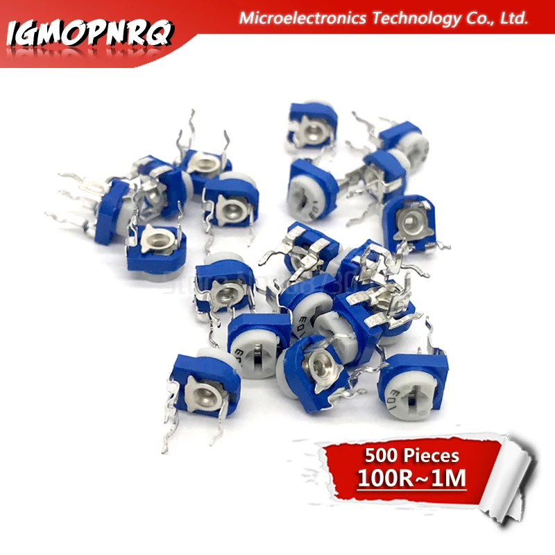 500 шт., подстроечный потенциометр RM065, 100, 200 Ом, 1K, 2K, 5K, 10K, 20K, 50K, 500K, 100K, 200K, 1M Ом, 100R, 200R, 500R