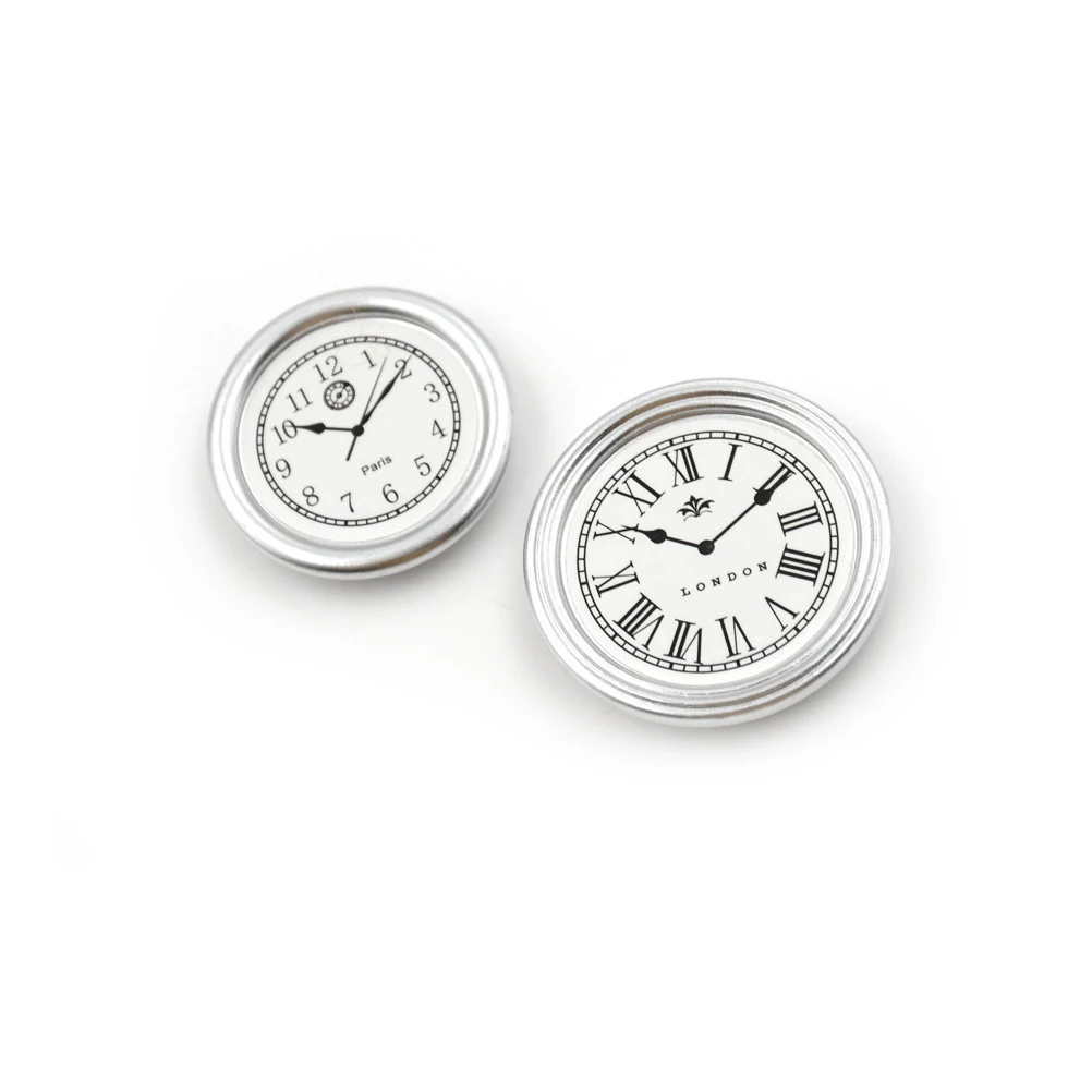 Миниатюрные часы для кукольного домика, 2 шт.компл., Миниатюрная игрушка для гостиной, серебристая стена с-образным замком, диаметр 3,1 см3,8 см
