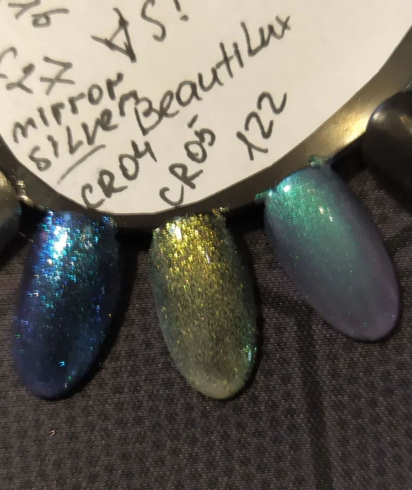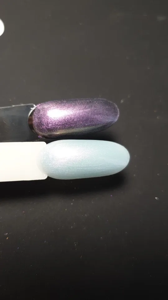 Посылка шла почти месяц, упаковано как всегда отлично, лаки супер, заказываю не первый раз , закажу ещё. Пробовала на светлом и темном фоне. Лучше всего смотрятся на светлой подложке, русалка с мелким жемчужным шиммером, классная.