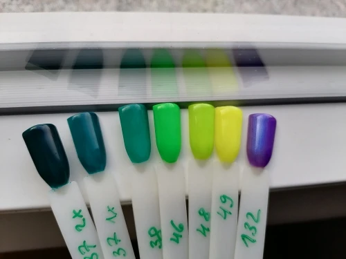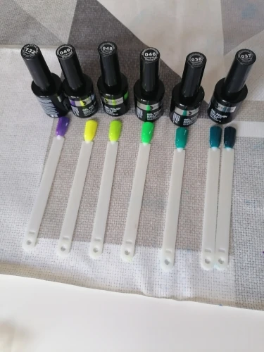 Отличные гель-Лаки. Быстрая доставка. Я очень доволен. На фотографиях только один слой, на искусственных ногтях на натуральном, я еще не пробовал. В любом случае цвета такие же красивые, как на фотографиях. Как и каждый раз, продавец кладет наклейки в подарок. Большое спасибо. Я рекомендую этого продавца с большим удовольствием.