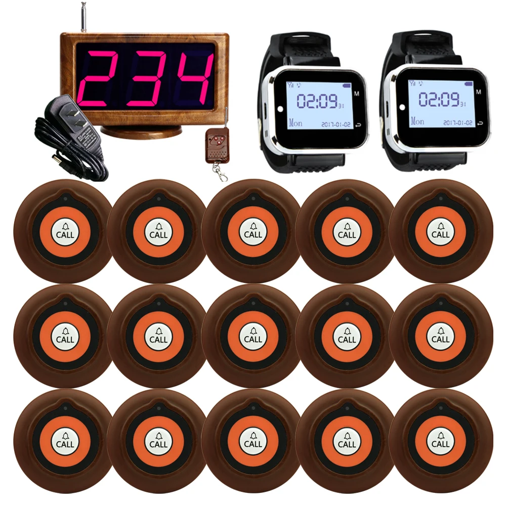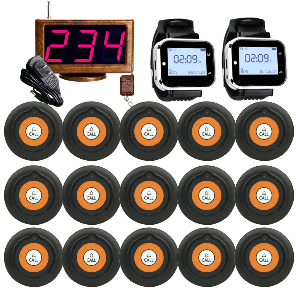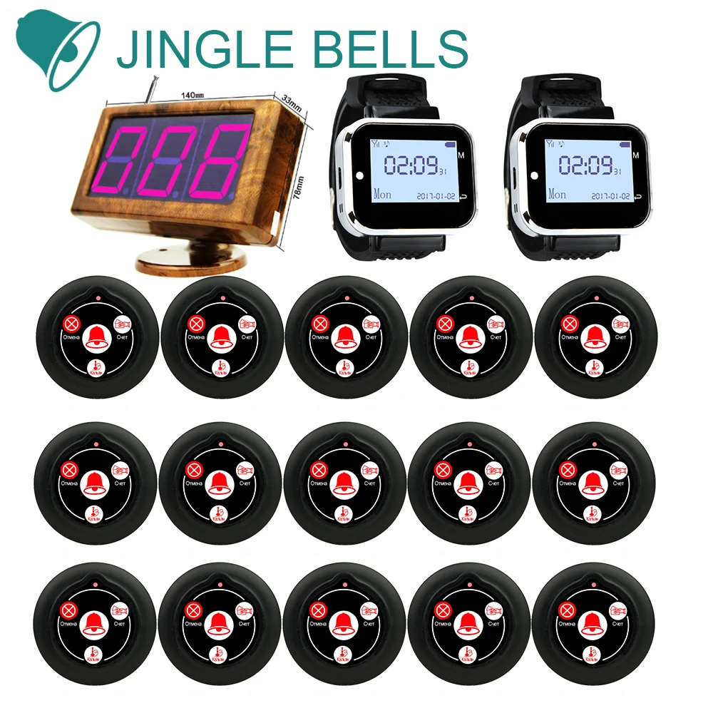 Беспроводная система вызова официанта JINGLE BELLS, пейджер для обслуживания гостей ресторана, 2 часа-приемника + 15 кнопок + 1 светодиодный монитор