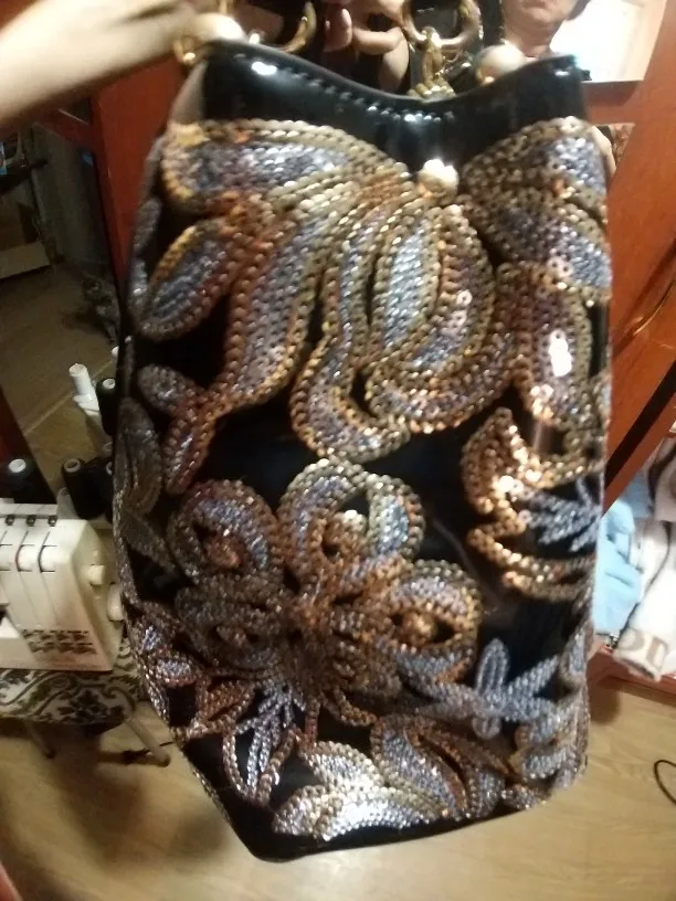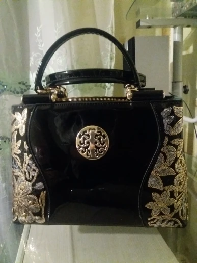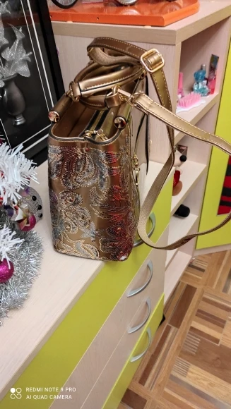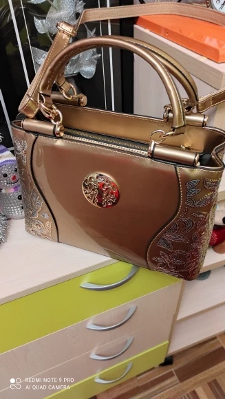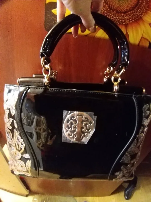 Очень красивая сумка, нарядная, пришла в хорошем состоянии, упакована, внутри пакетики с воздухом. Даже маленький подарочек положили: цепочку с подвесочной. Я очень довольна покупкой.