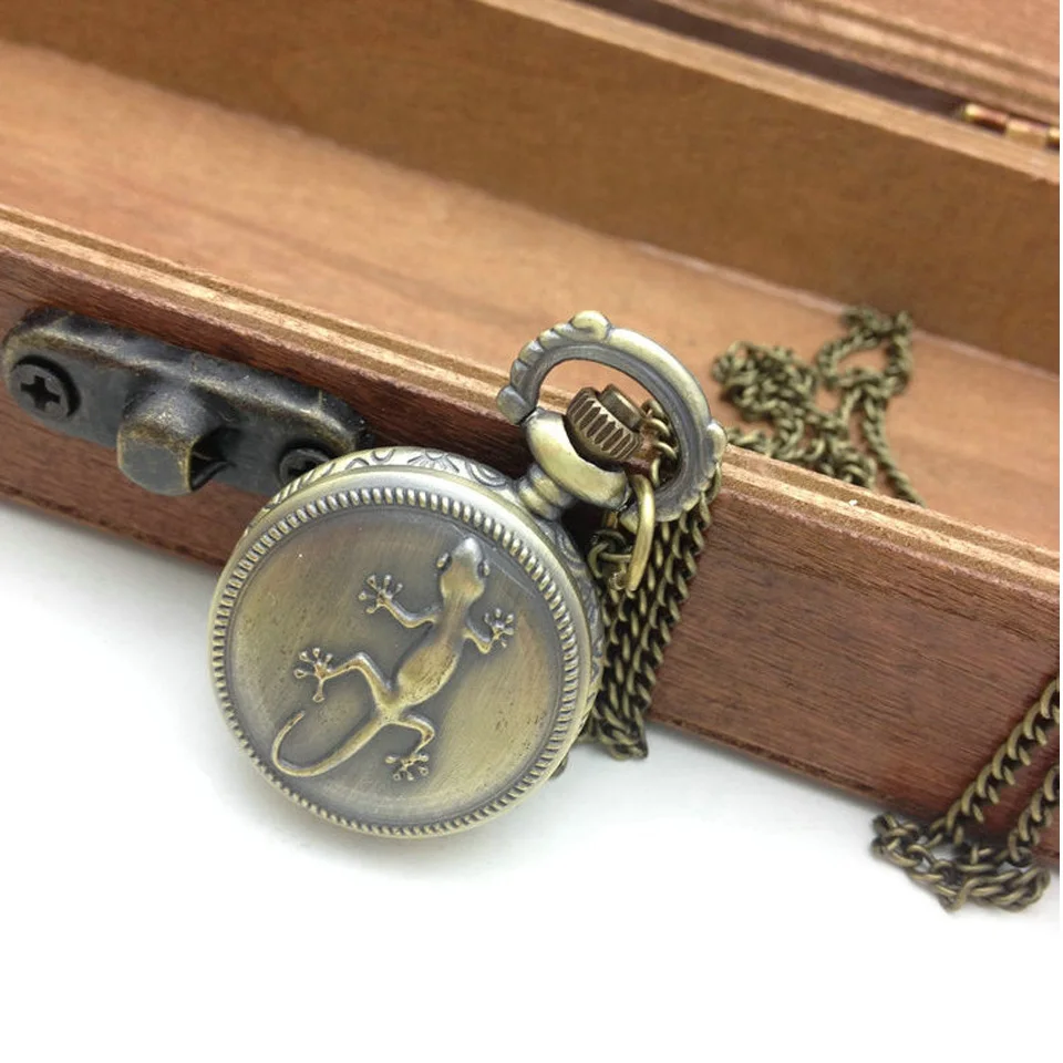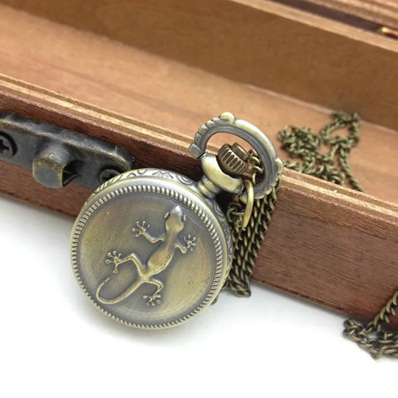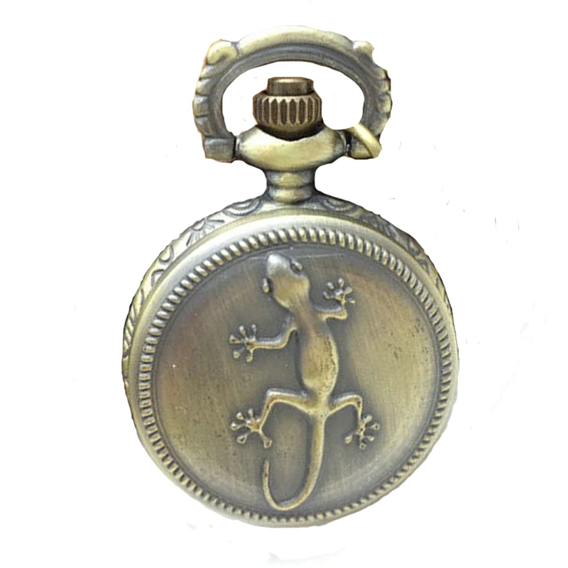 (3114) бронзовые 12 шт.лот панк мини геккон настенные ящерицы круглые карманные часы ожерелья подвеска. Подарок на день рождения