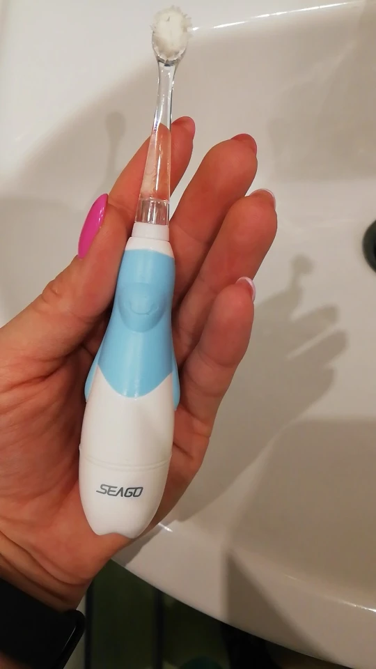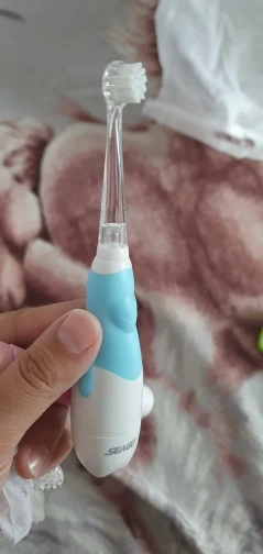 Щеткой очень довольны, брала сыну 2 года. Если обычную щетку просто грыз, то этой чистит. Сын доволен, с радостью бежит чистить зубы. На фото щеткой уже пользовались 2недели. Понравилось, что в комплекте запасные щетки и даже отвёртка для того, чтобы вставить батарейку. Кстати в воду сын отпускал, всё отлично работает. Покупкой очень довольна. Рекомендую