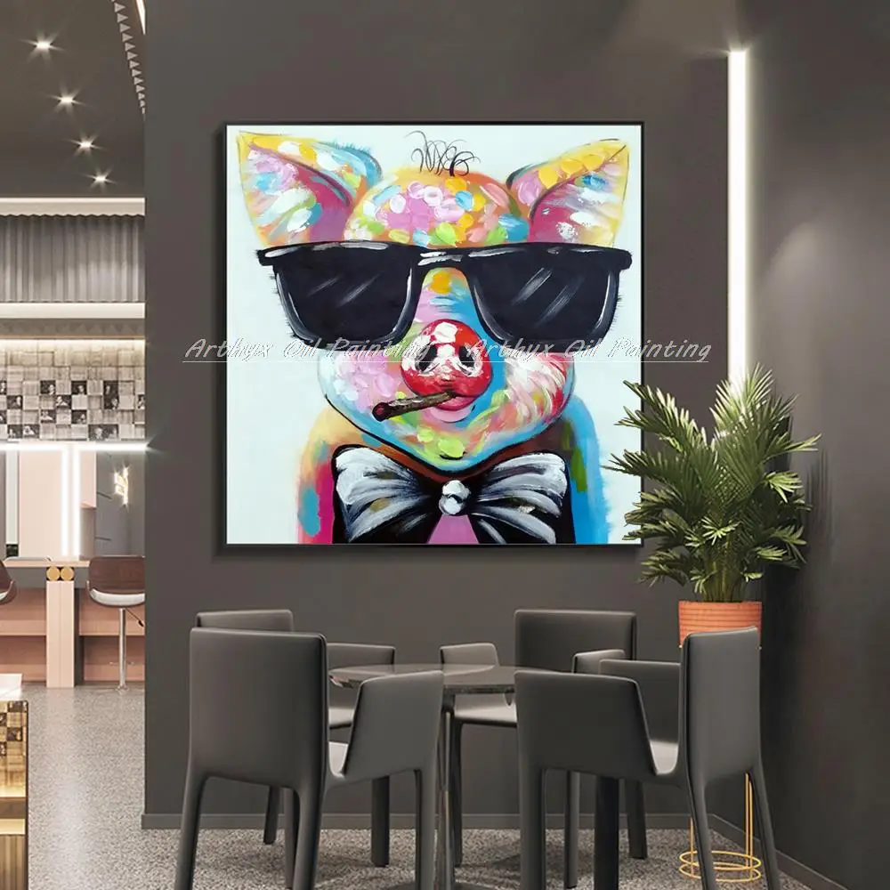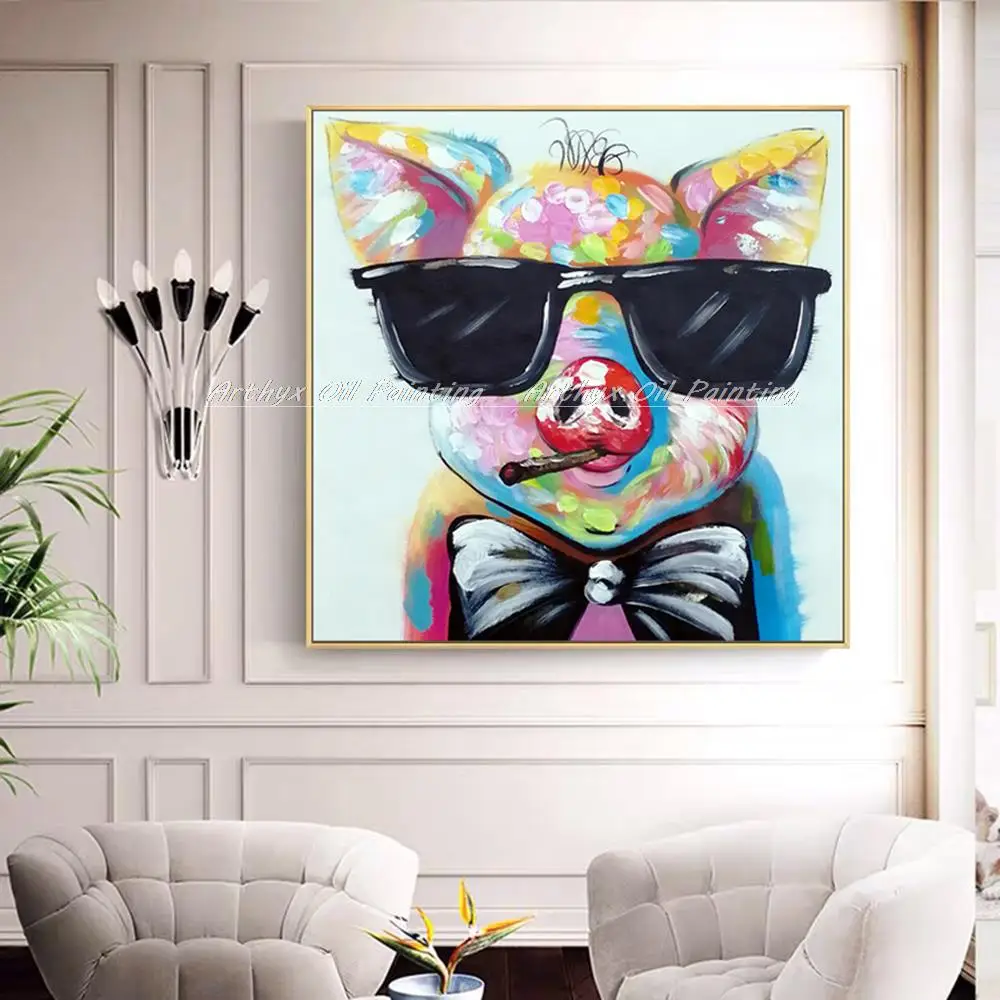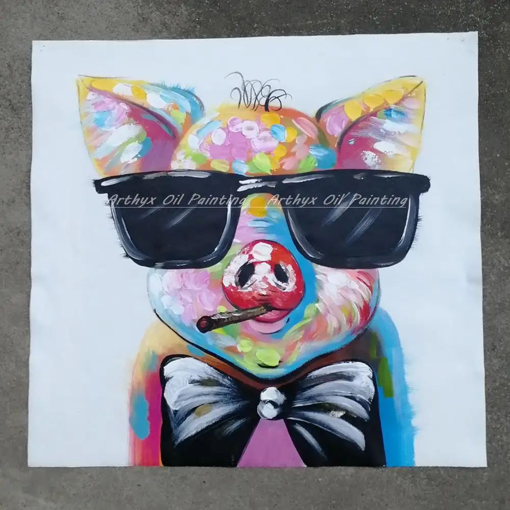 Arthyx оригинальная поп-арт ручная роспись свинка животное масляная живопись на холсте Абстрактная свинка Настенная картина для детской комнаты домашнее украшение
